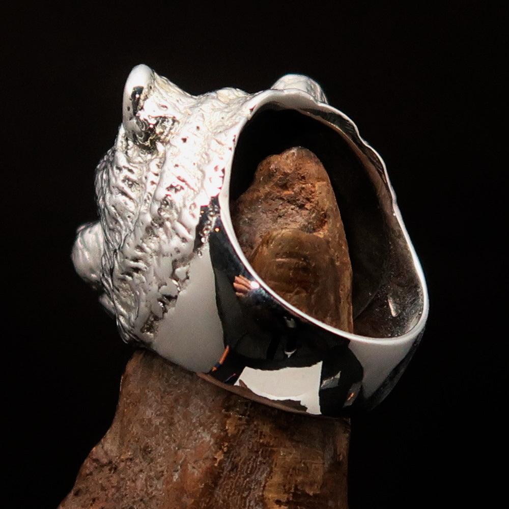 Introducing the Excellent Crafted Men's Sterling Silver Ring Grizzly Bear Antiqued, a remarkable accessory designed for men who value quality and craftsmanship. This stunning ring is made from solid sterling silver, ensuring durability and a luxurious feel. The unique grizzly bear design is both high polished and antiqued, creating an eye-catching look that stands out in any setting.