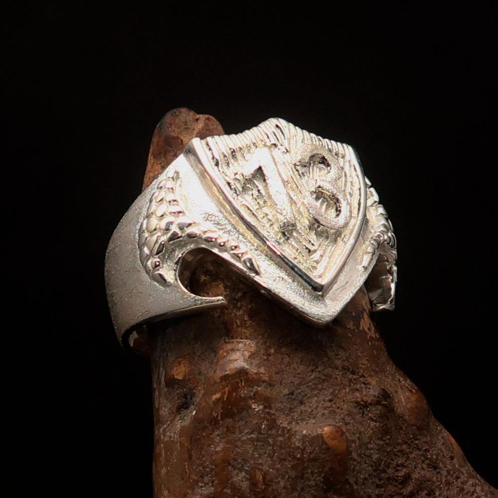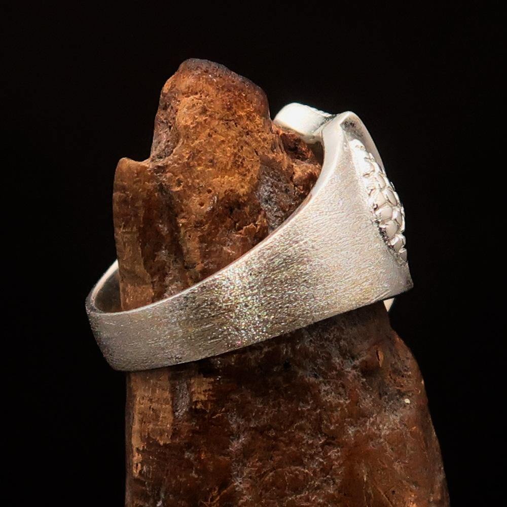 The dimensions of the ring are 20 mm along the finger and 16 mm wide, making it a comfortable fit for most men. Its shield shape is not only stylish but also symbolizes strength and protection, making it an ideal gift for yourself or a loved one. Whether you wear it daily or on special occasions, this ring is sure to draw attention.