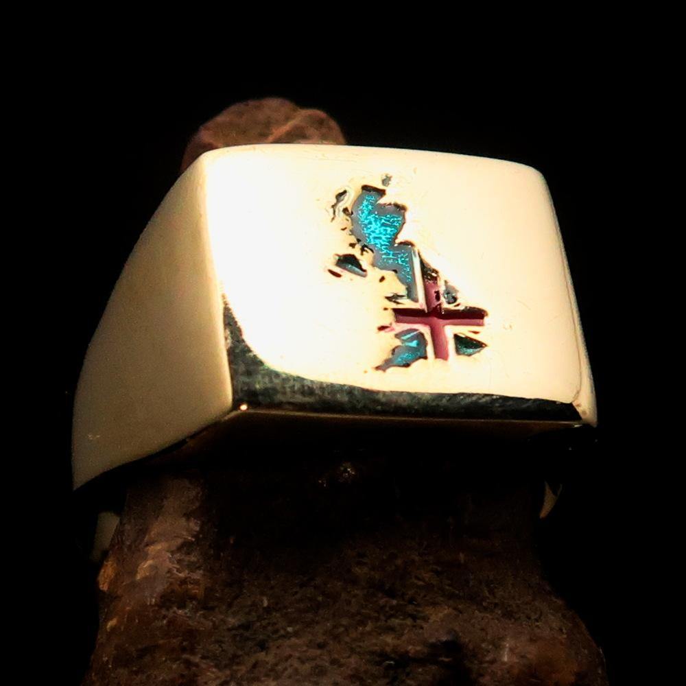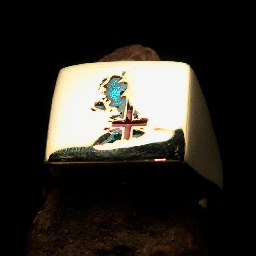 Introducing the beautifully crafted Men's Union Jack Flag Ring, a perfect accessory for those who take pride in their British heritage. Made from solid brass, this ring features a high polished finish that enhances its vibrant colors and intricate design. The Union Jack flag is a symbol of Great Britain, and wearing this ring allows you to showcase your love for the UK in a stylish and sophisticated manner.