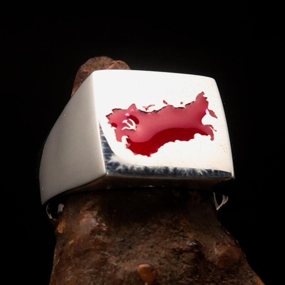 Men's USSR CCCP Flag Ring made of sterling silver with enamel detailing, showcasing the Soviet Union flag design.