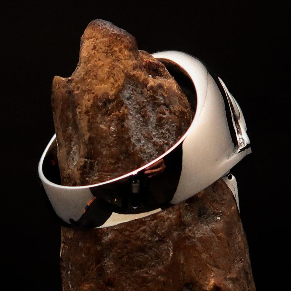 The standout feature of this ring is undoubtedly the flaming skull design, which embodies the spirit of rebellion and adventure. The skull is adorned with red cubic zirconia eyes, measuring 6 mm x 4 mm, that catch the light beautifully and add a pop of color to the overall design. This ring is hallmarked 925, ensuring its authenticity and quality as a sterling silver piece.