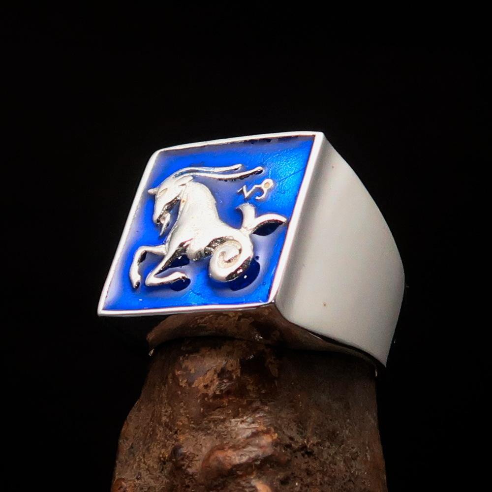 In summary, the Men's Zodiac Ring for Capricorn is a stunning piece of jewelry that combines quality, style, and personal significance. With its solid sterling silver construction, beautiful blue enamel, and thoughtful design, it is a must-have for anyone looking to express their astrological identity.