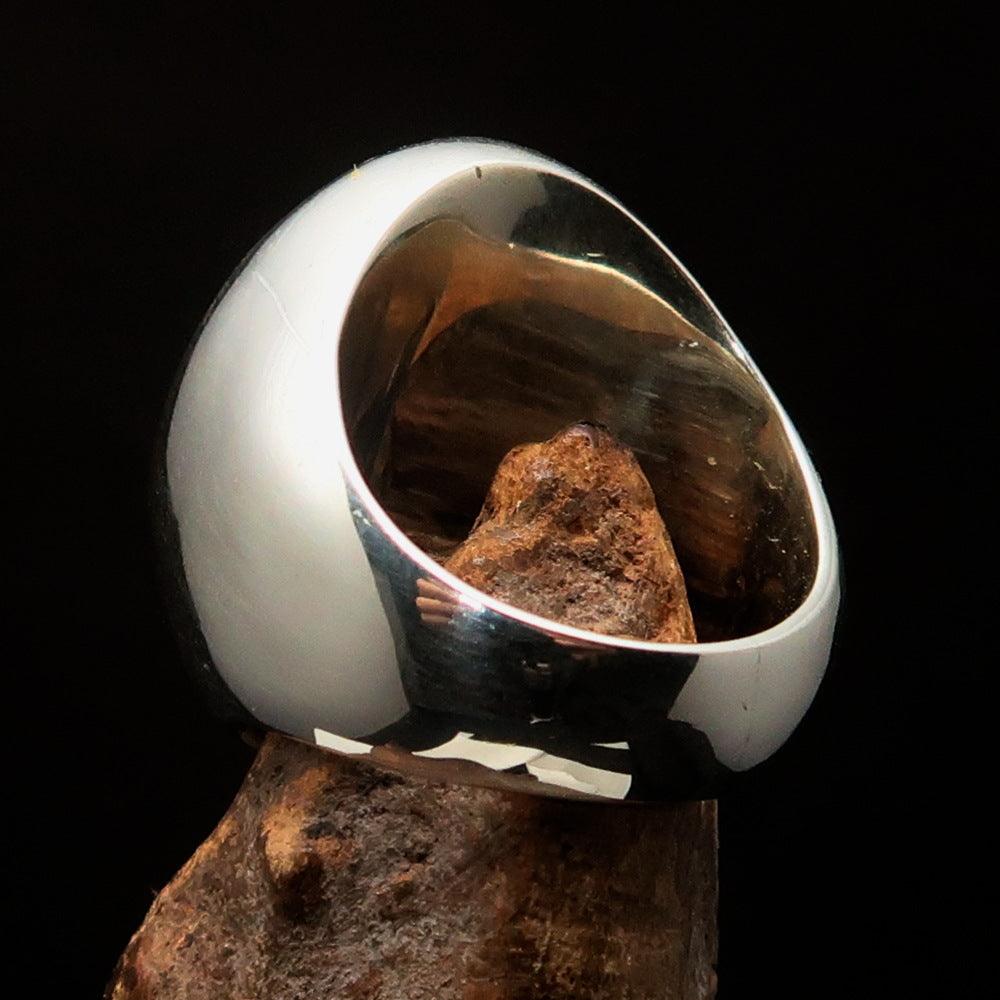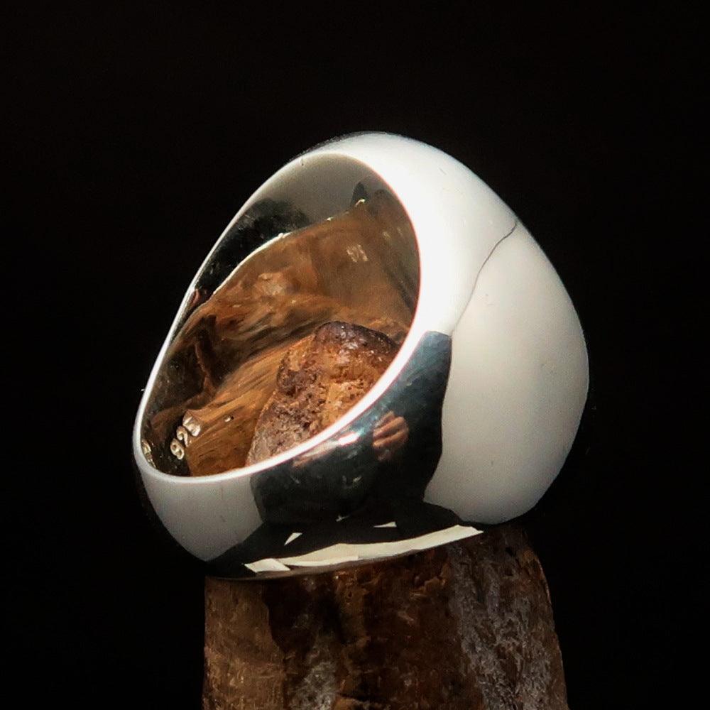 The dimensions of the ring are 24 mm along the finger and 19 mm wide, making it a bold yet comfortable choice for any man. The oval shape of the ring adds to its uniqueness, allowing it to stand out while still being versatile enough for everyday wear. We understand that finding the perfect fit is essential, which is why we offer 11 sizes to choose from, as well as a custom size option. You can easily request half or even quarter sizes by adding a note during checkout, ensuring that your ring fits perfectly.