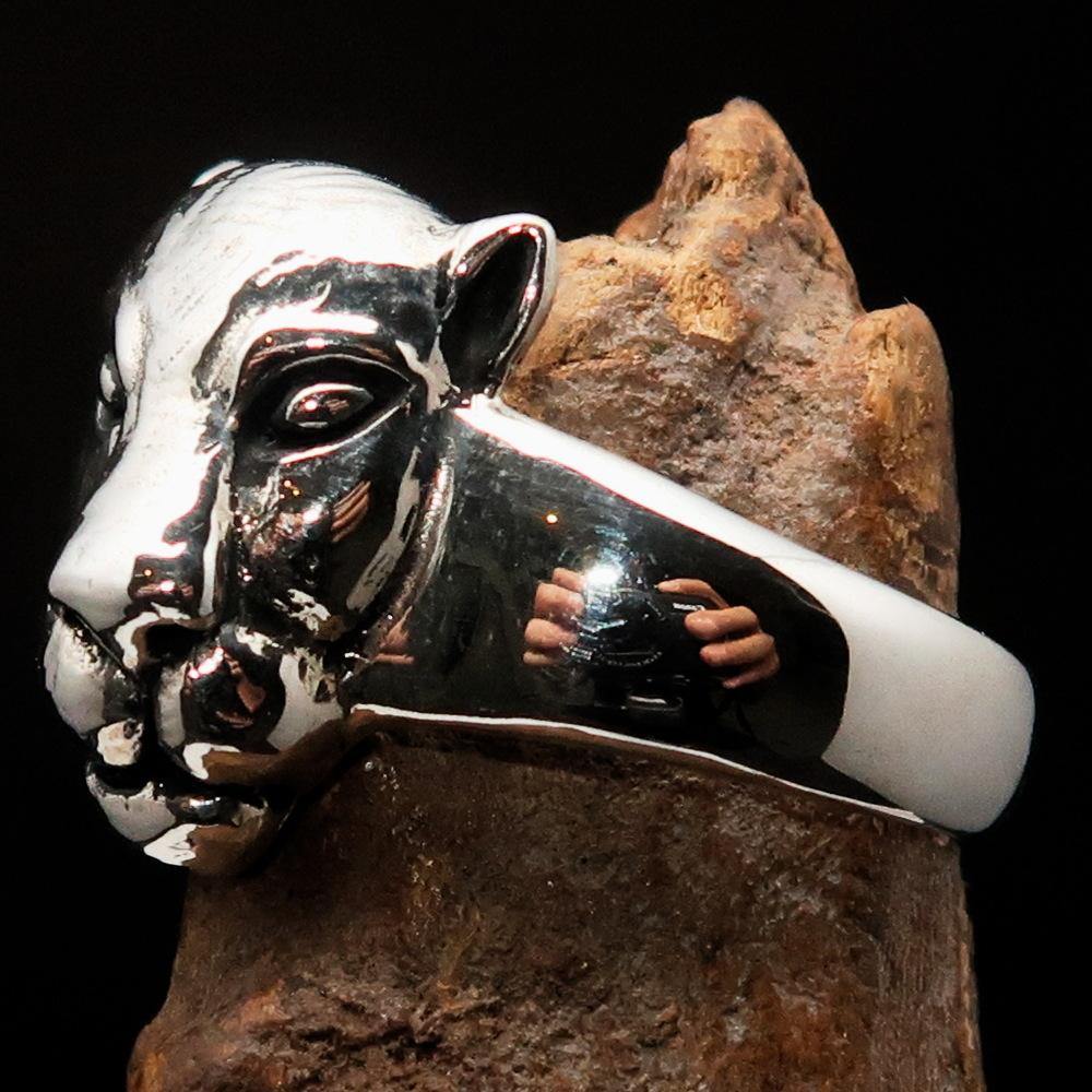 This Excellent crafted Sterling Silver Animal Ring features a stunning design of a female Lioness, making it a perfect accessory for animal lovers and jewelry enthusiasts alike. The ring is made from solid Sterling Silver, ensuring durability and a luxurious feel. With its high polished finish, this ring not only looks beautiful but also catches the light beautifully, making it an eye-catching piece for any occasion.