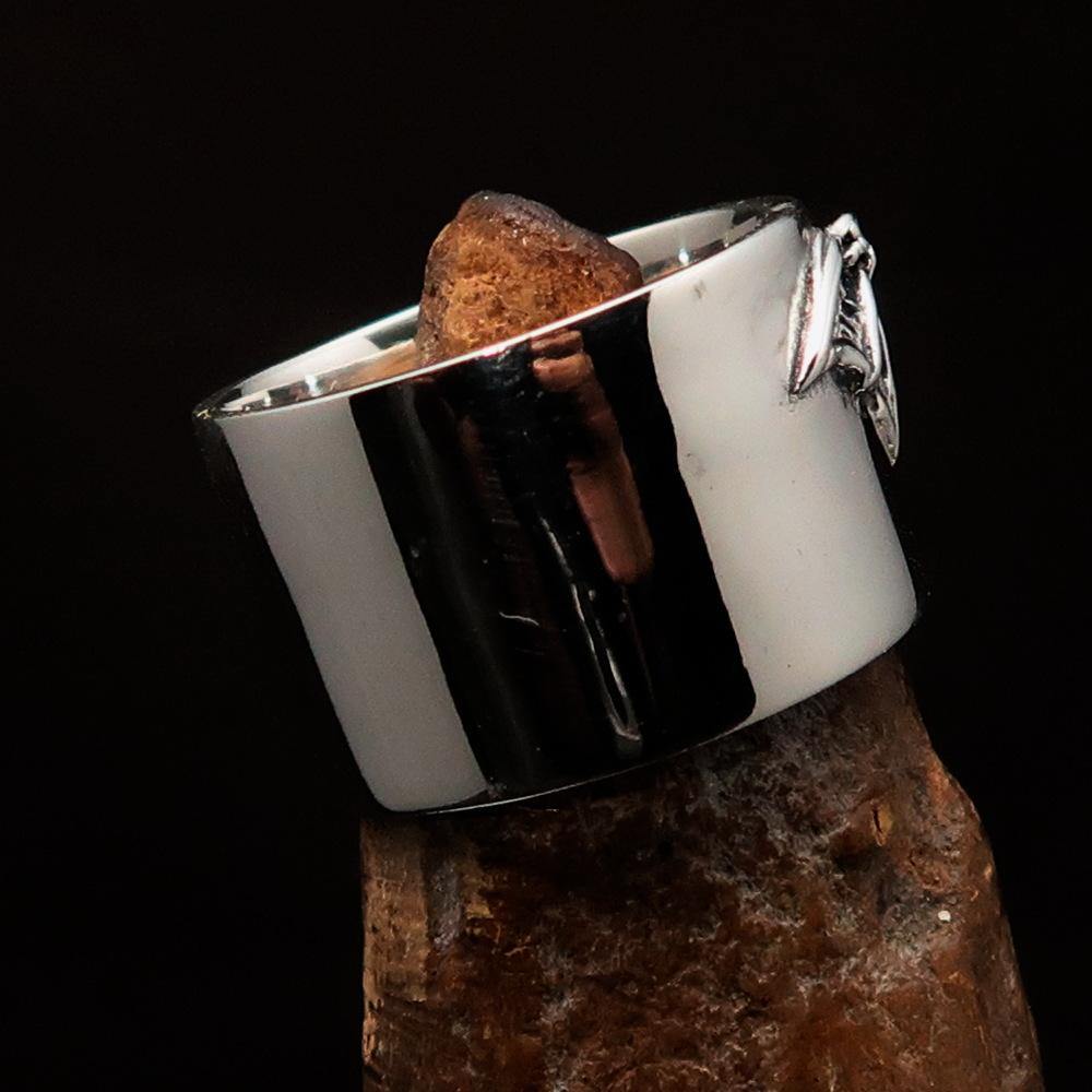The dimensions of the ring are 15 mm wide along the finger, making it a bold and eye-catching accessory. With 12 sizes available, you can easily find the perfect fit for your finger. Additionally, for those who require a more customized fit, there is a custom size option available. You can order half or even quarter sizes by simply adding a note during checkout, ensuring that your ring fits comfortably and securely.