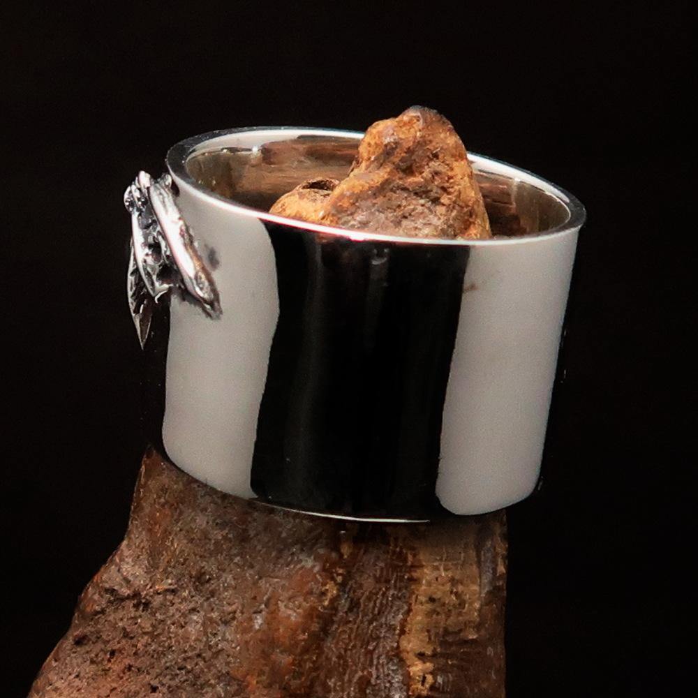The Excellent Crafted Winged Bat Skull Ring is expertly antiqued and high polished, enhancing its overall aesthetic appeal. The antiquing process not only adds depth to the design but also highlights the intricate details of the bat skull and wings. This meticulous craftsmanship ensures that each ring is a work of art, making it a perfect addition to any jewelry collection.