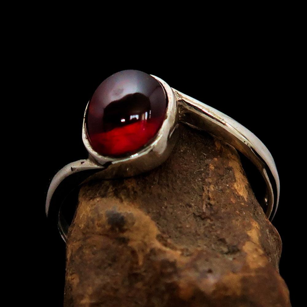 This Women's Ring with red Garnet Cabochon is versatile enough to be worn on any occasion. Whether you're dressing up for a formal event or adding a touch of elegance to your everyday outfit, this ring is the perfect accessory. Its classic design complements a variety of styles, making it a must-have addition to your jewelry collection.