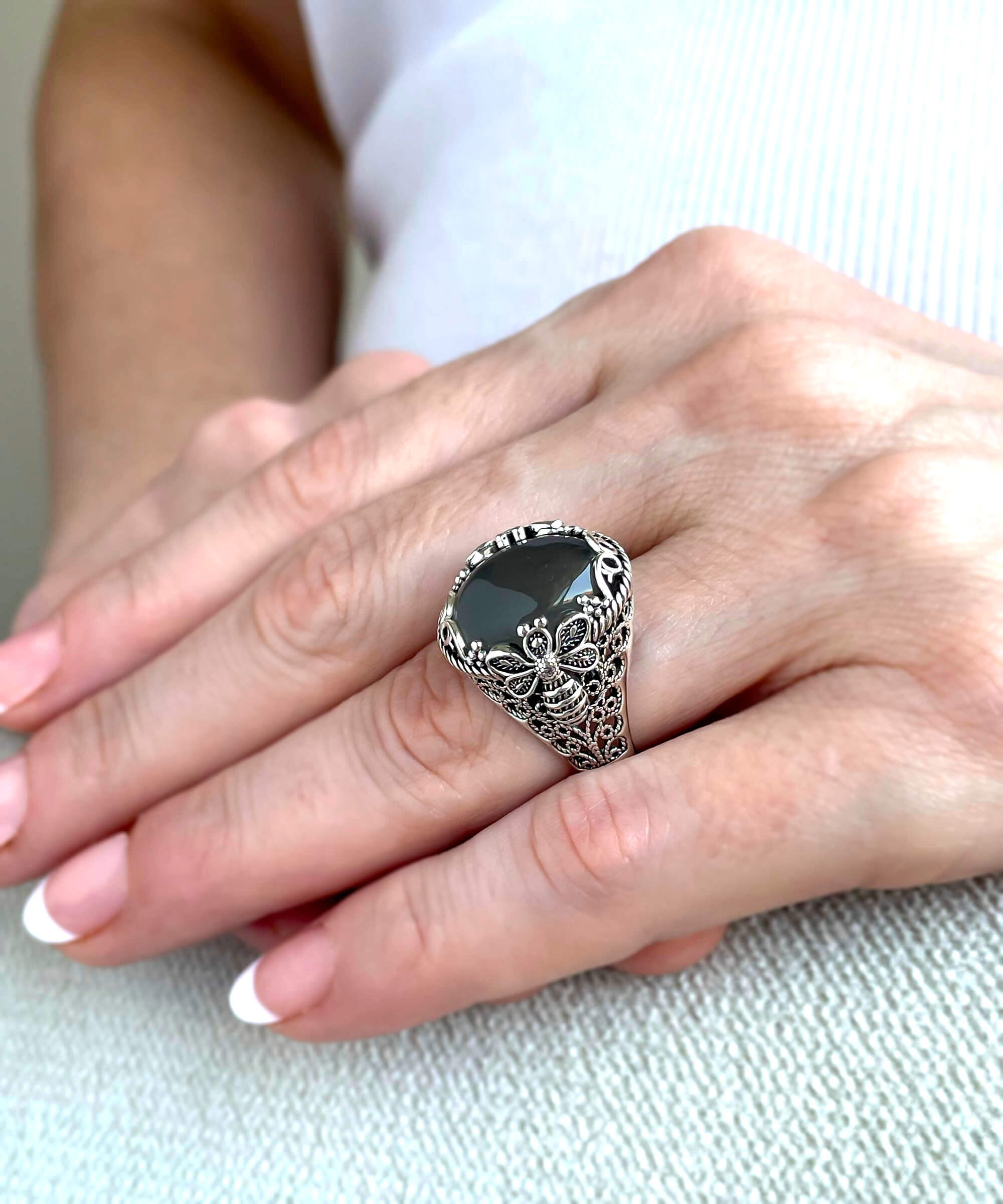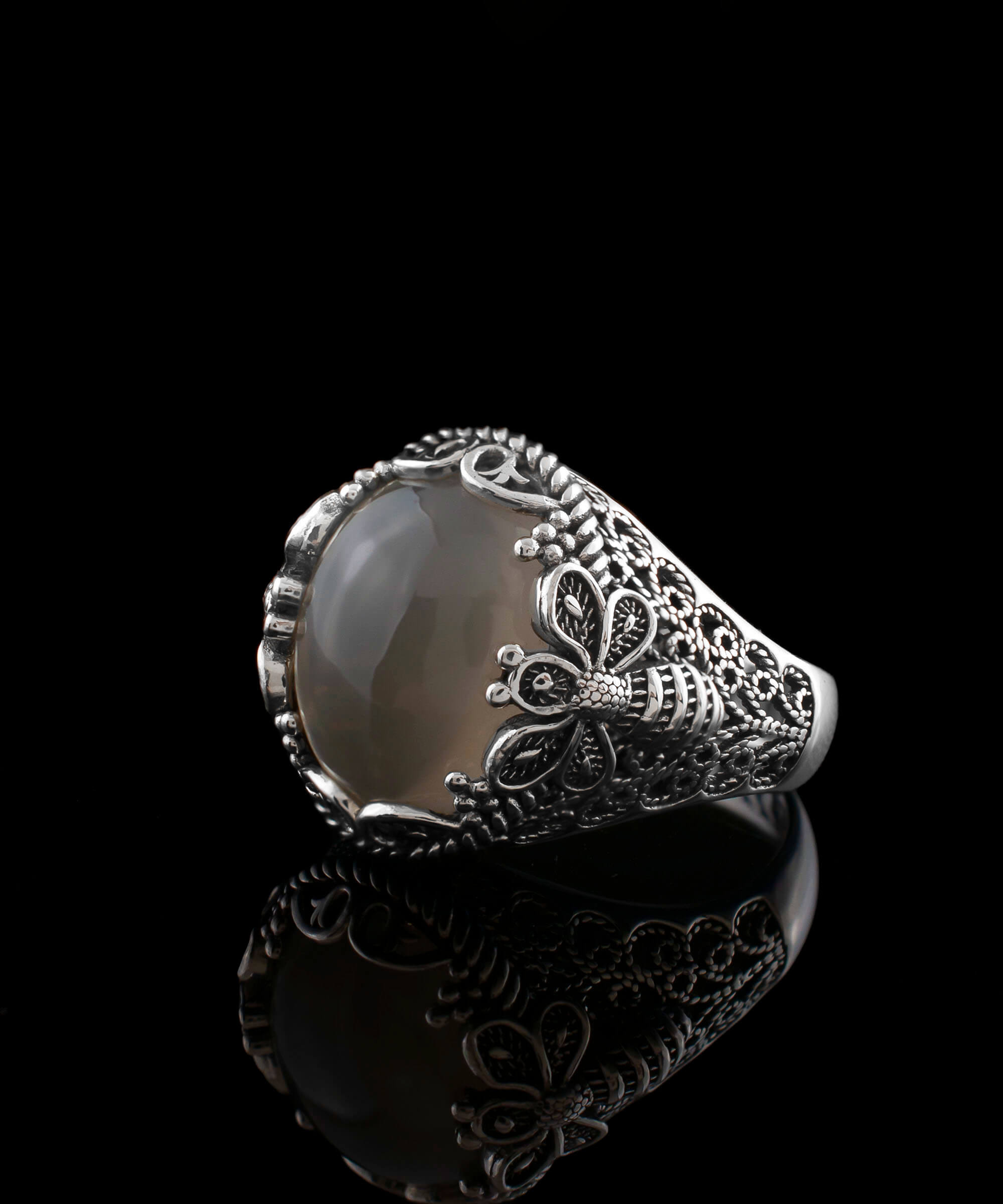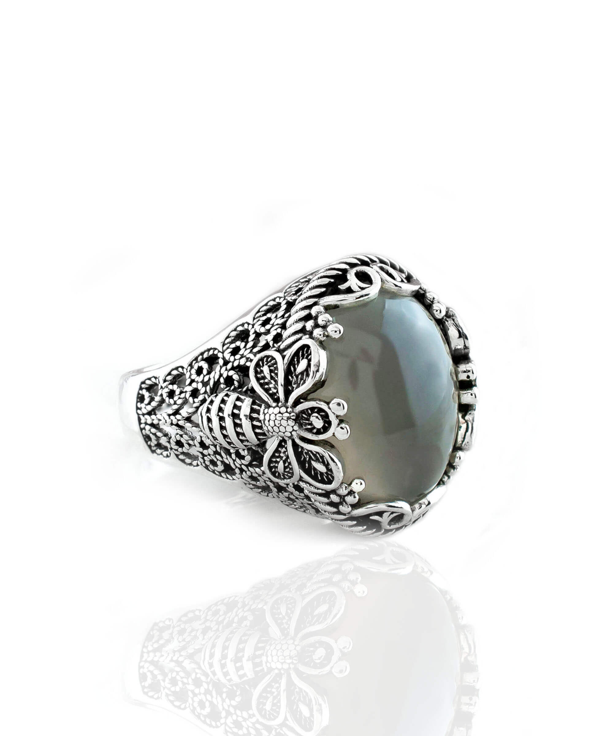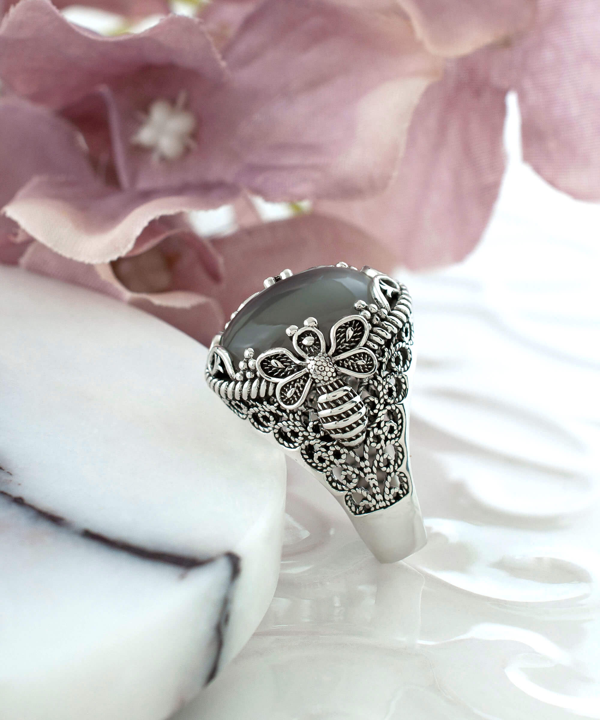 In summary, the Filigree Art Bee Detailed Gray Moonstone Gemstone Women Silver Ring is not just a piece of jewelry; it is a work of art that tells a story. With its unique design, high-quality materials, and thoughtful presentation, it is a must-have addition to any jewelry collection.