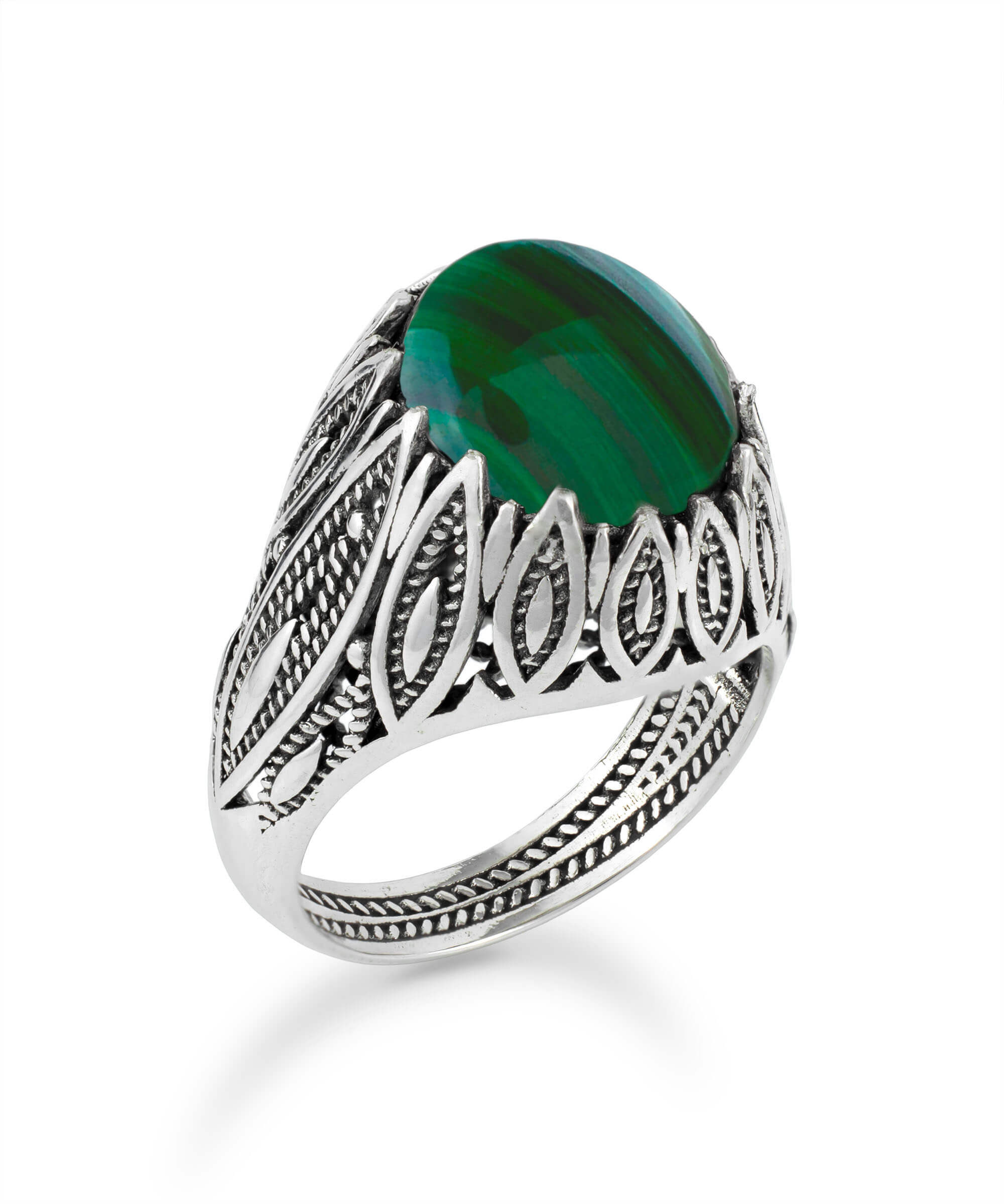 Dropship Filigree Art Malachite Gemstone Women Silver Statement Ring