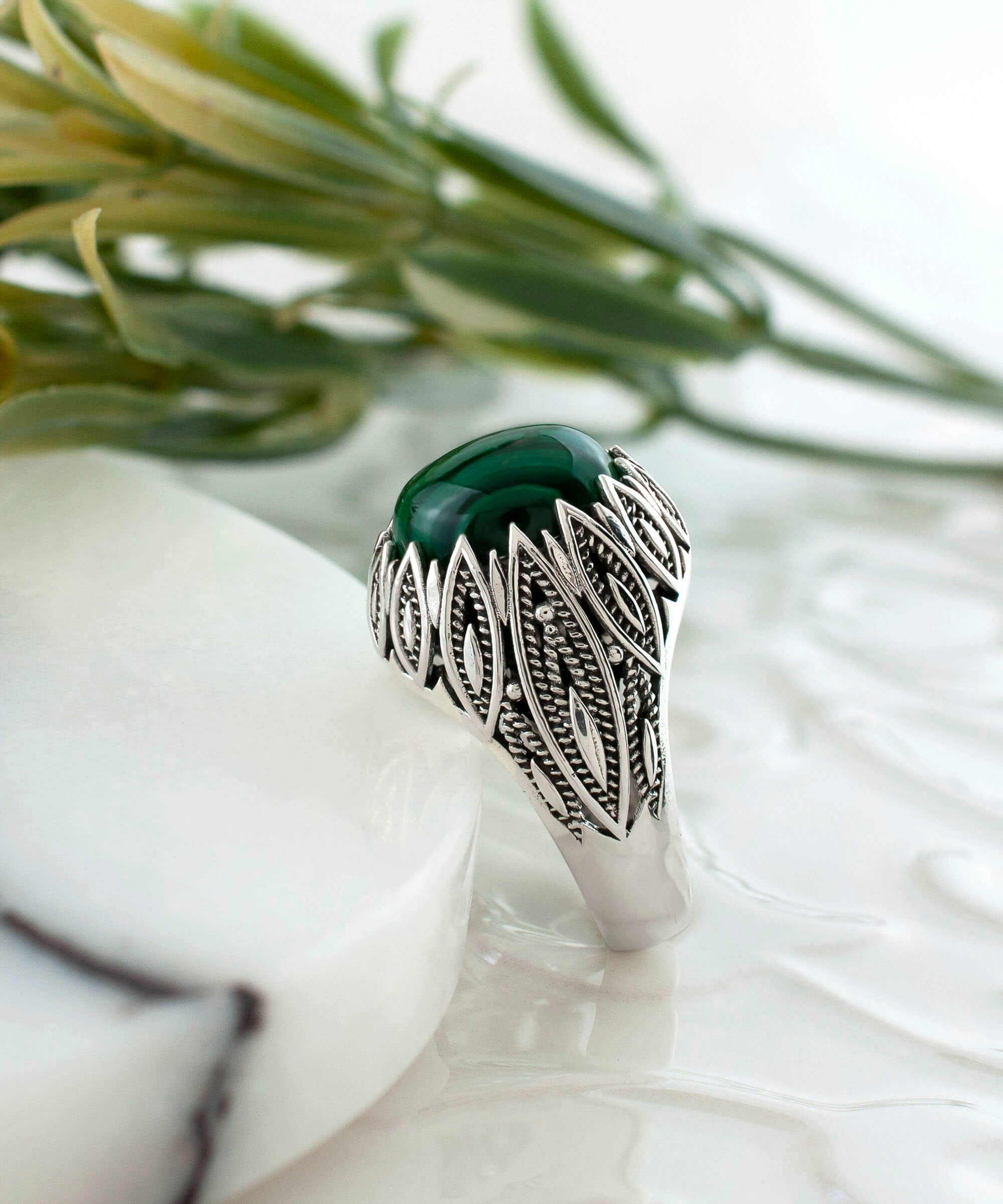 Introducing the exquisite Filigree Art Malachite Gemstone Women Silver Statement Ring, a stunning piece of jewelry that combines elegance and artistry. Crafted from high-quality 925 sterling silver, this ring is designed to make a statement while providing comfort and style. The centerpiece of this ring is a beautiful natural Malachite gemstone, known for its rich green hues and unique patterns, making each piece truly one-of-a-kind.