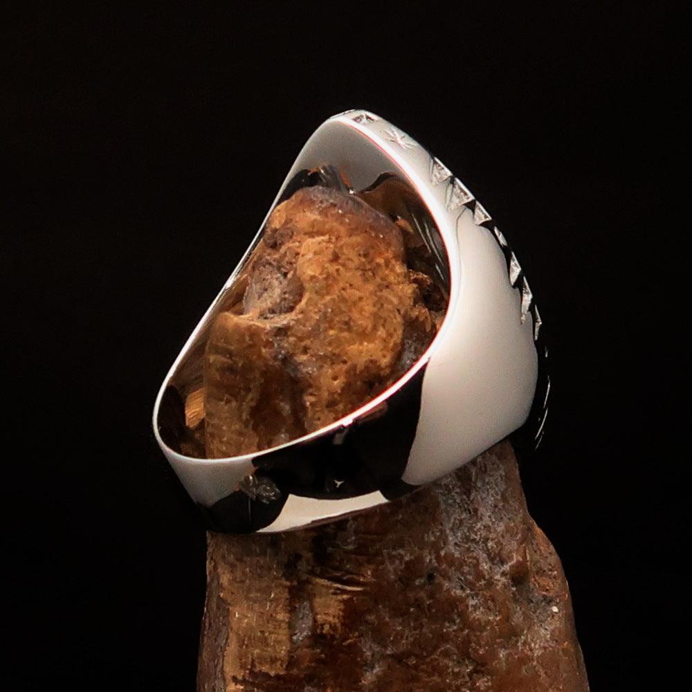 The Green Marquise Shaped Egyptian Ankh Cross Men's Ring is versatile enough to be worn with various outfits. Pair it with casual attire for a laid-back look or wear it with formal wear to make a bold statement. Its unique design is sure to attract compliments and spark conversations, making it a great addition to your jewelry collection.