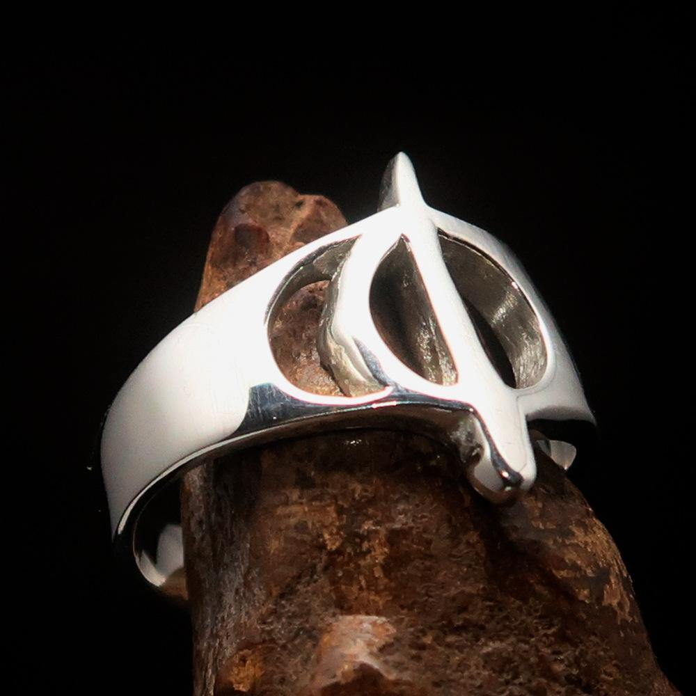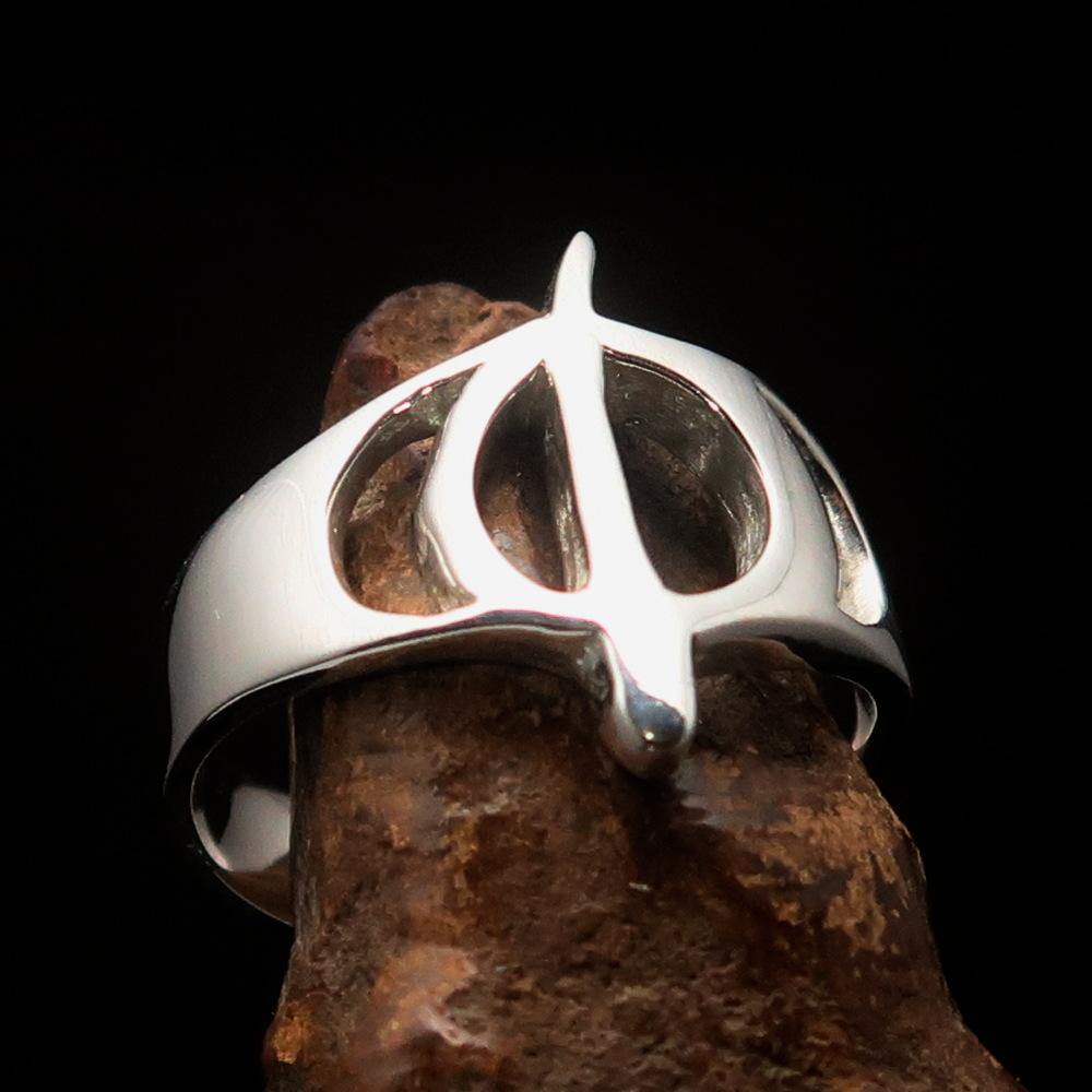 Men's sterling silver ring featuring the Greek letter Phi, high polished finish, and hallmarked 925 for authenticity.