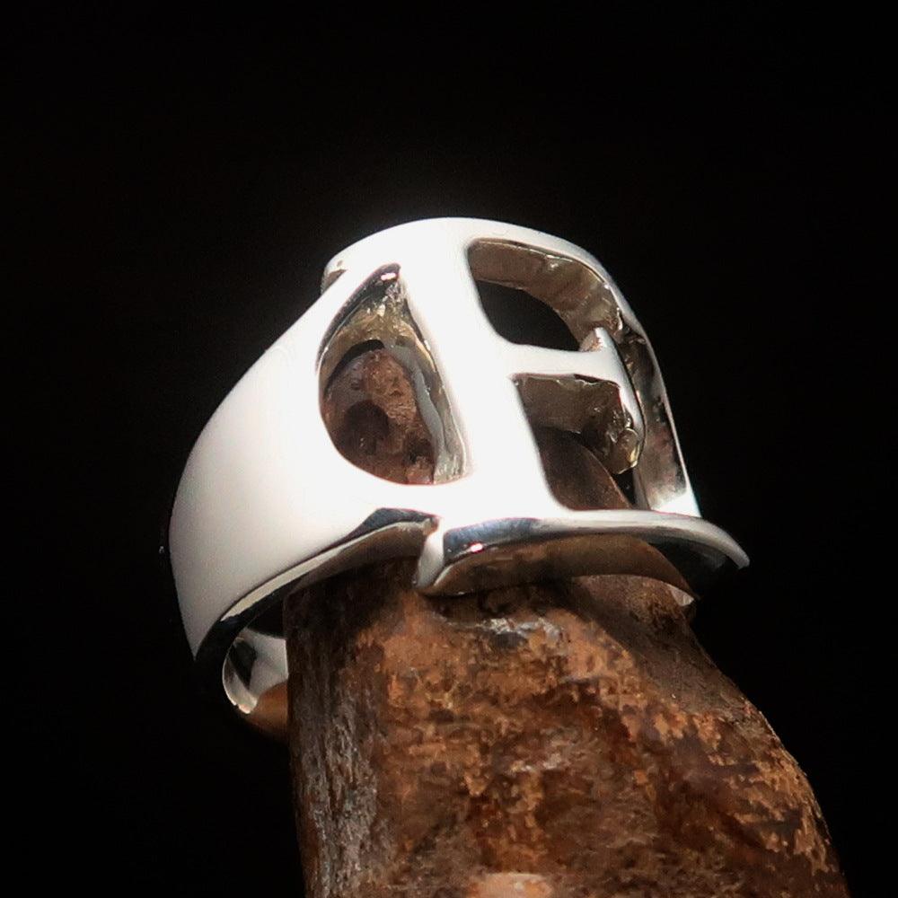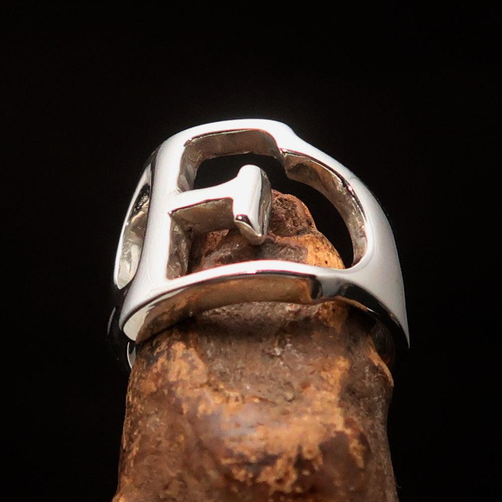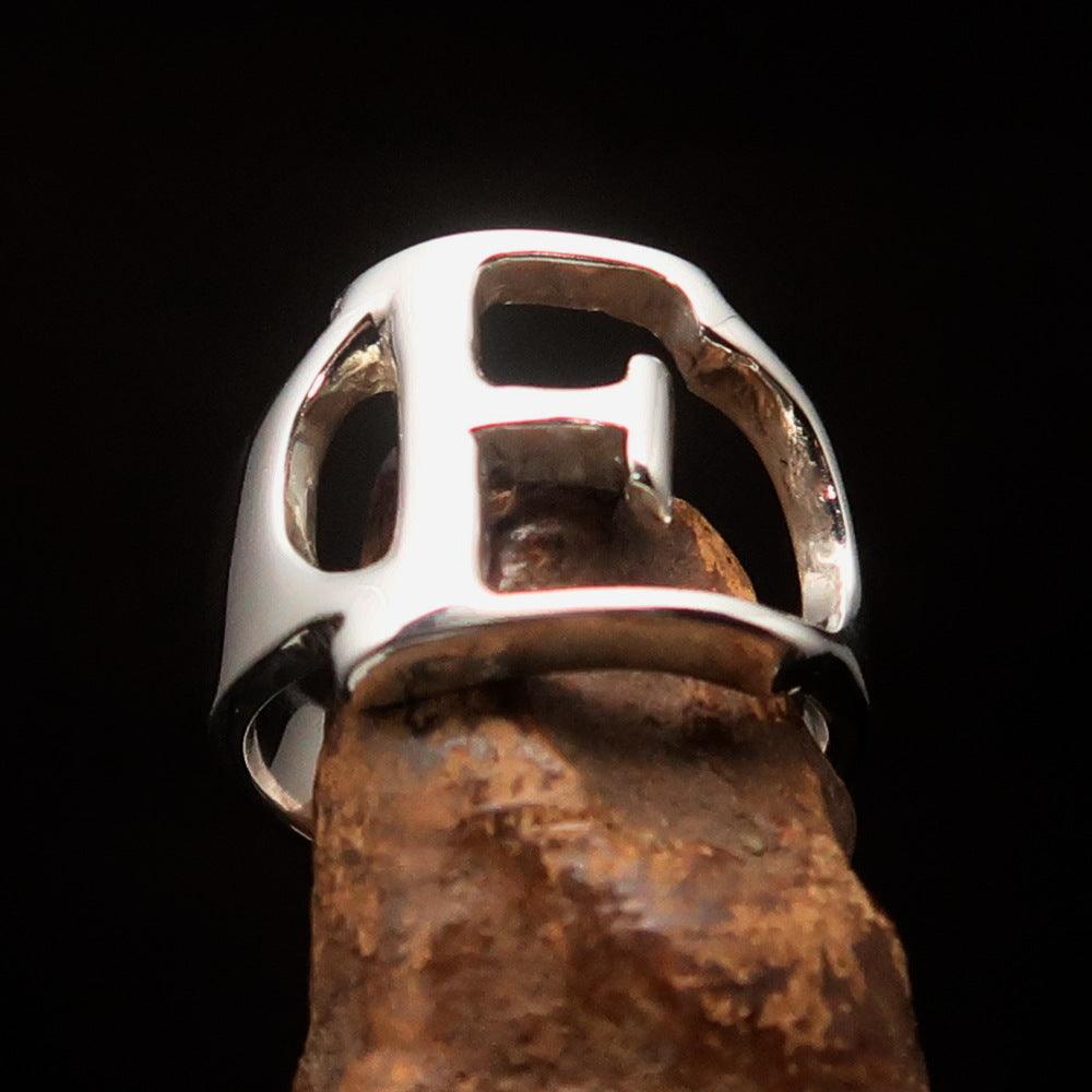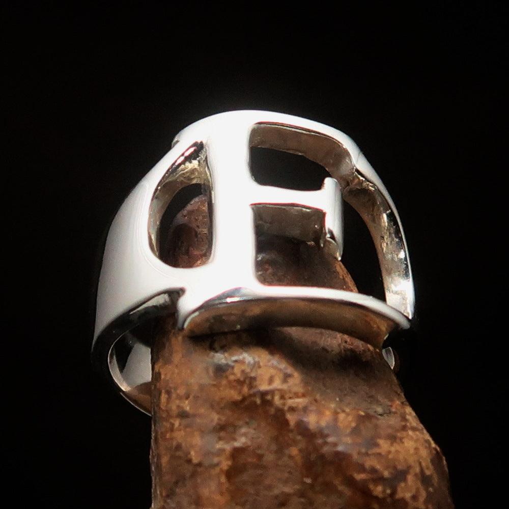Introducing the Men's Greek Upper Case Capital Letter Initial Ring Epsilon, a stunning piece of jewelry crafted from solid sterling silver. This ring is not only a fashion statement but also a representation of your individuality and heritage. The polished finish enhances its elegance, making it suitable for both casual and formal occasions.