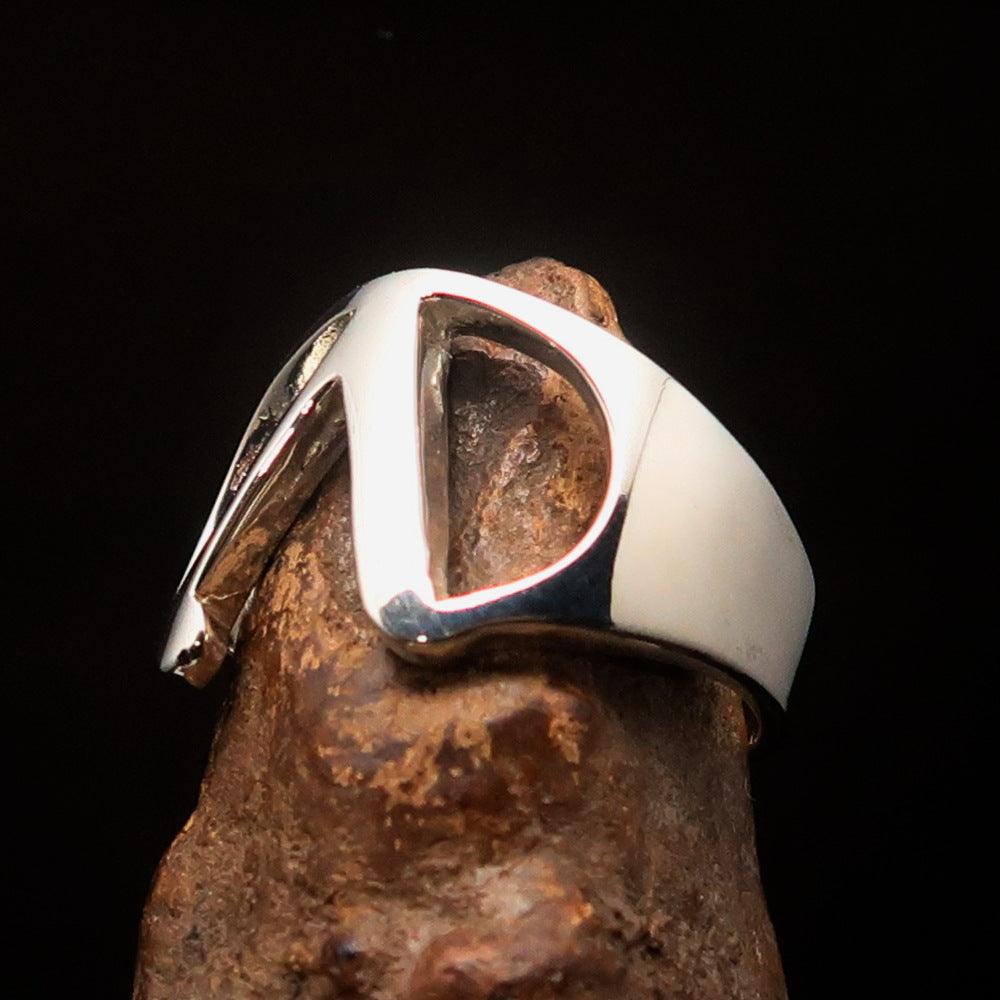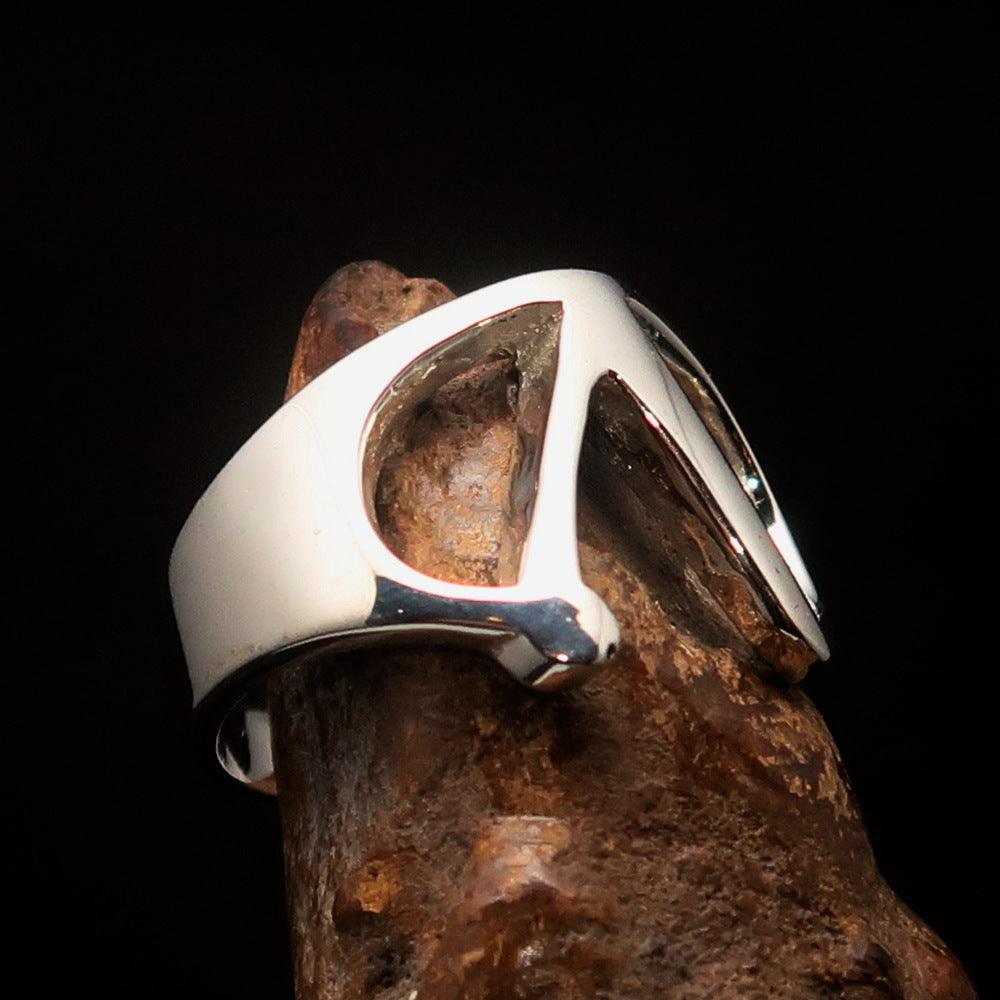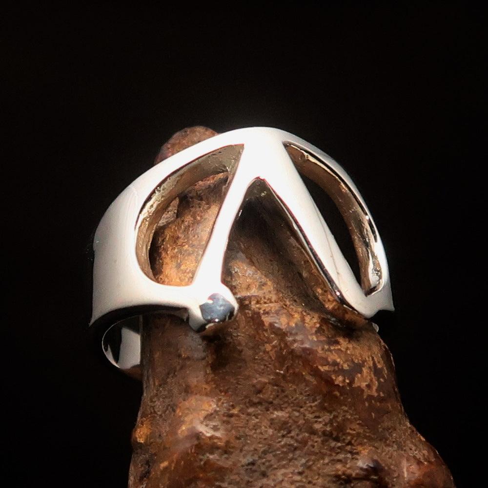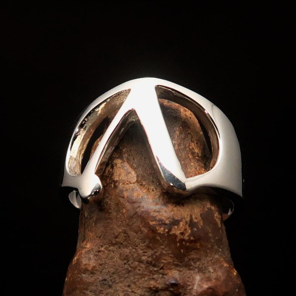 Introducing the Men's Greek Upper Case Capital Letter Initial Ring Lambda, a stunning piece crafted from solid sterling silver. This high-polished ring showcases the Greek letter Lambda, making it a unique accessory that reflects personal style and heritage. The ring is hallmarked 925, ensuring its authenticity and quality, so you can wear it with confidence.