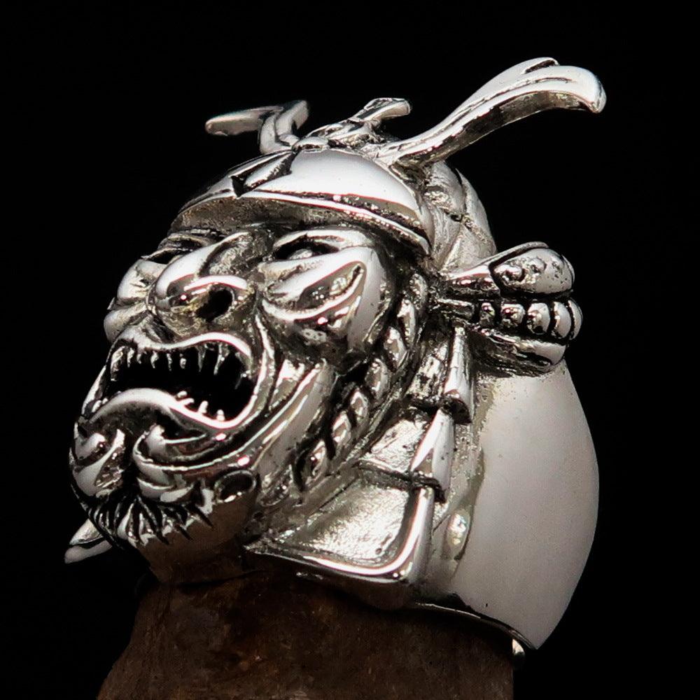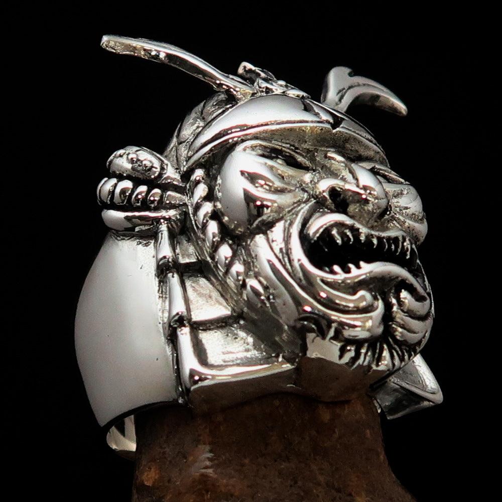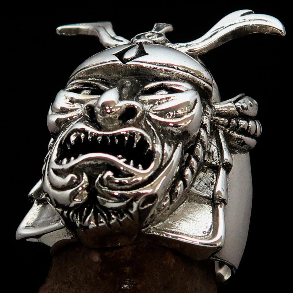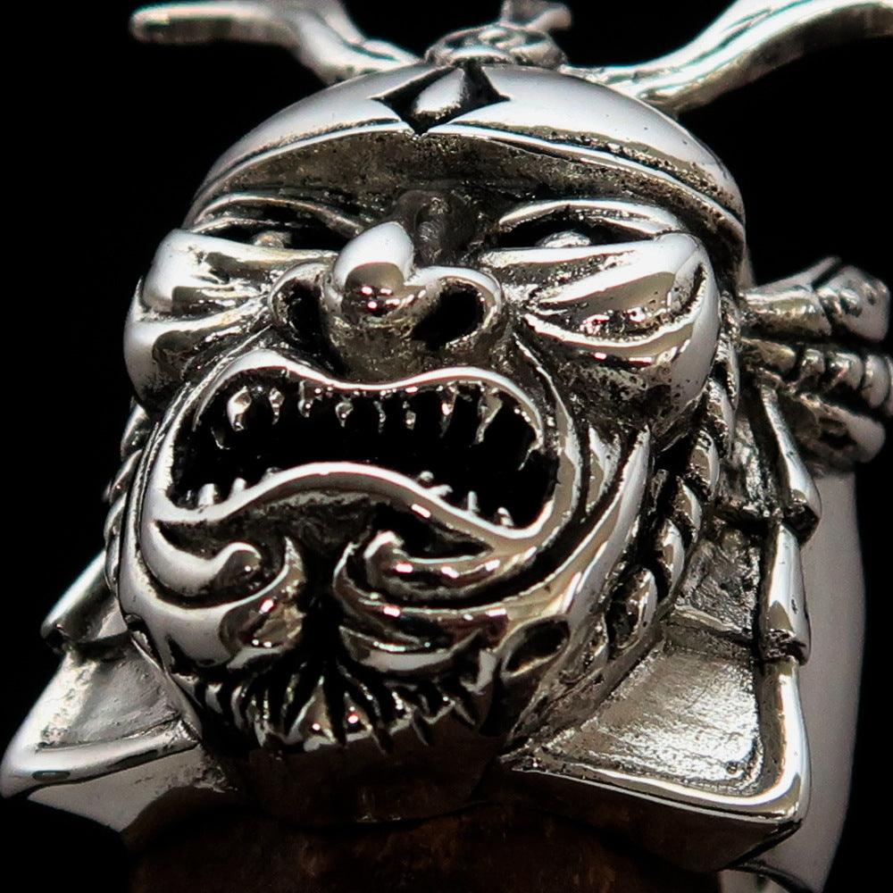Introducing the Men's Japanese Warrior Ring, a remarkable piece of jewelry that embodies the spirit and artistry of the samurai. This unique ring features a meticulously crafted Samurai Mempo Kabuto Mask, symbolizing strength and honor. Made from solid sterling silver, this ring is not only a fashion statement but also a tribute to the rich history of Japanese warriors.