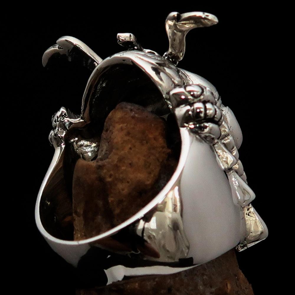 The Samurai Mempo Kabuto Mask is designed with intricate details that reflect the traditional aesthetics of samurai armor. The combination of antiqued and high-polished finishes gives the ring a striking appearance, making it a standout accessory for any occasion. Each ring is hallmarked 925, ensuring that you are receiving a high-quality piece that meets the highest standards of sterling silver jewelry.