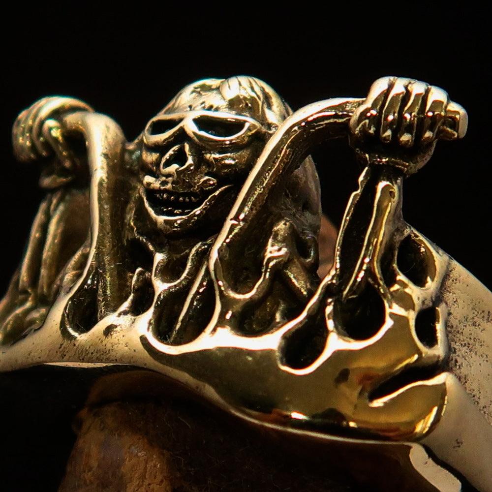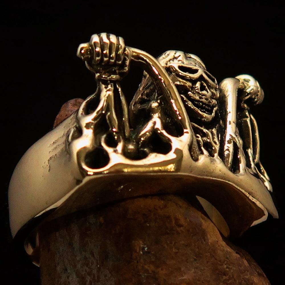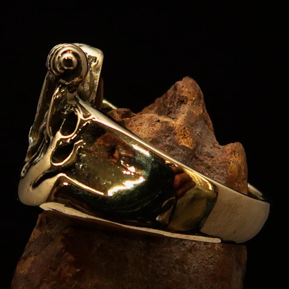Men's Outlaw Pinky Ring made of solid antiqued brass, featuring a polished finish and biker-inspired design.