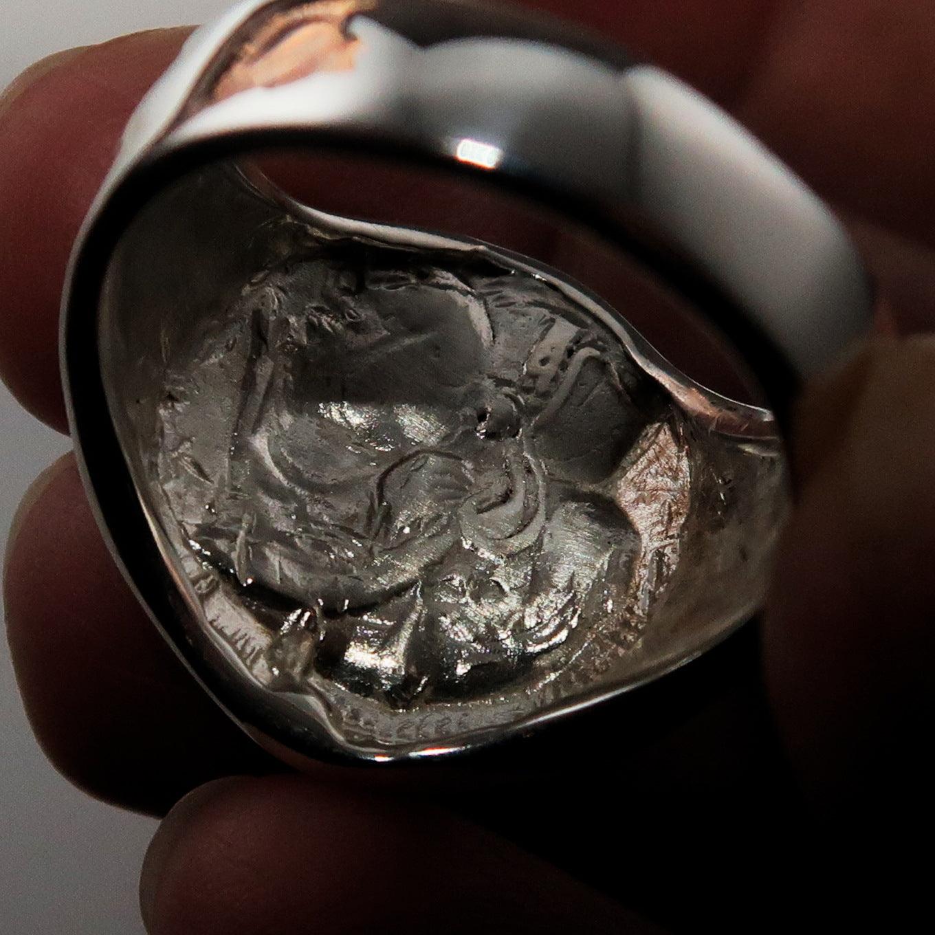 The owl has long been a symbol of wisdom and knowledge, making this ring not just a piece of jewelry but a representation of these values. Wearing the Men's Sterling Silver Ancient Greek Drachma Coin Owl Ring allows you to carry a piece of history with you, showcasing your appreciation for ancient cultures and their significance in today's world.