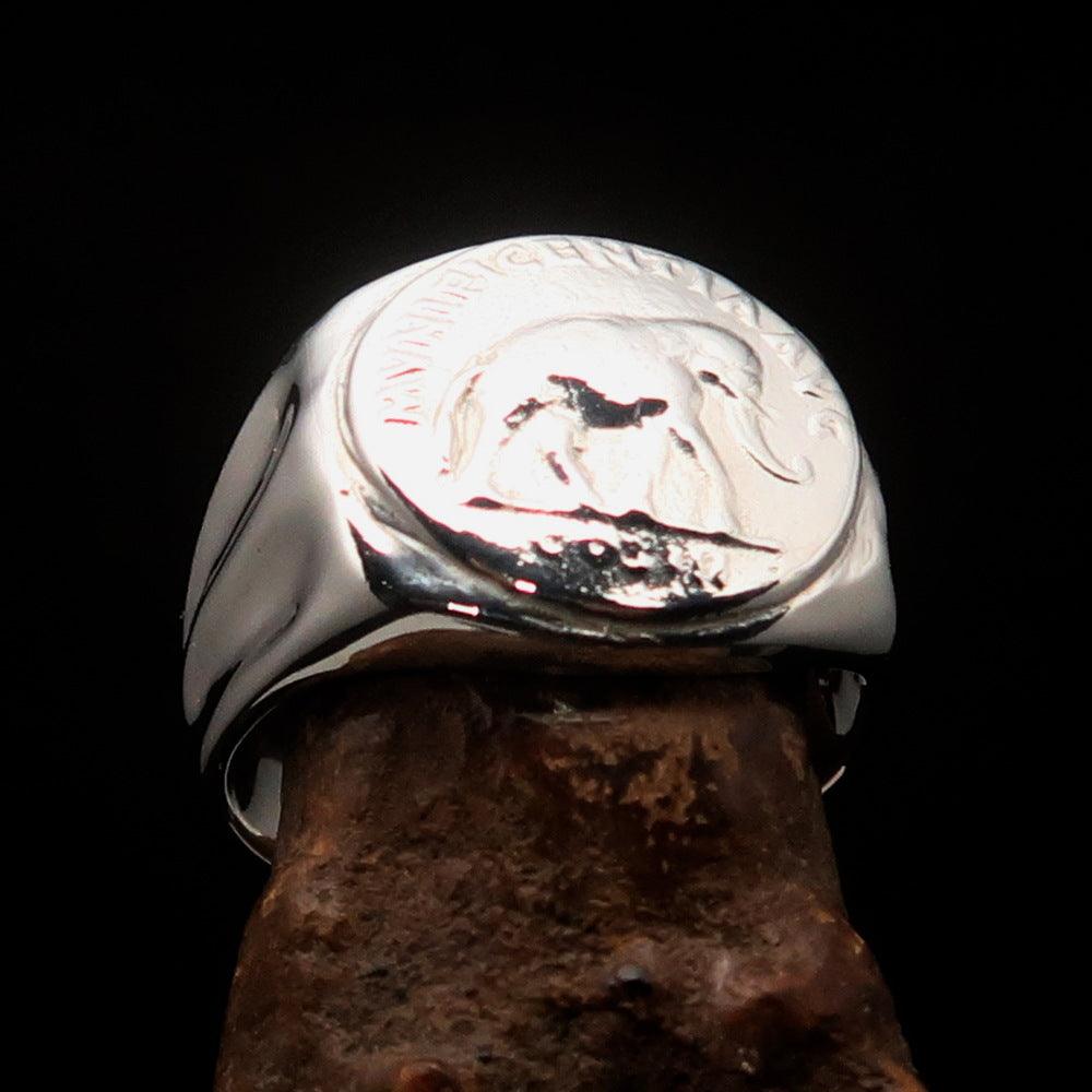 This Men's Sterling Silver Elephant Ring is versatile enough to be worn on various occasions. Whether you're dressing up for a formal event or looking to add a unique touch to your everyday attire, this ring is the perfect accessory. Its historical design makes it a conversation starter, allowing you to share the story behind the piece with others.