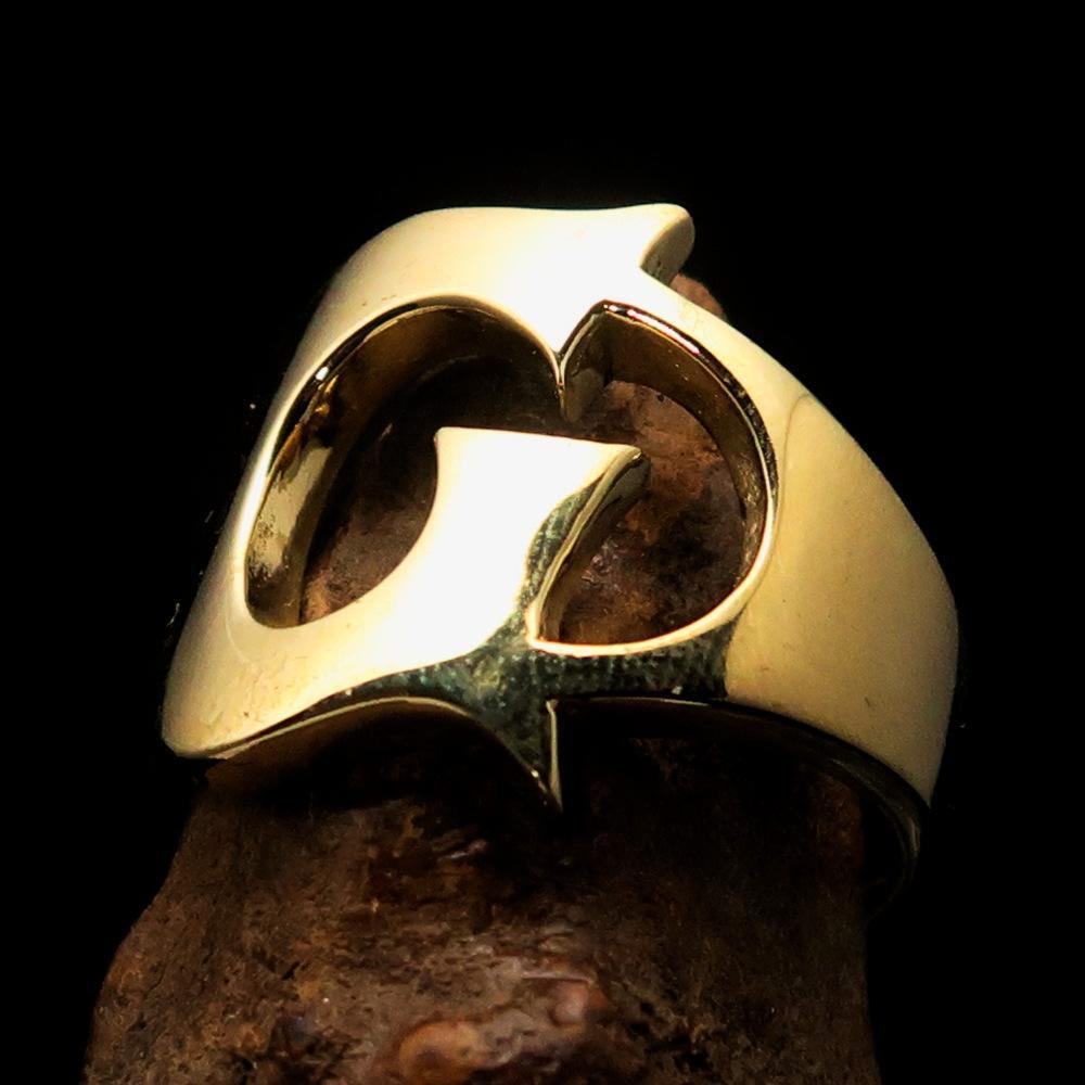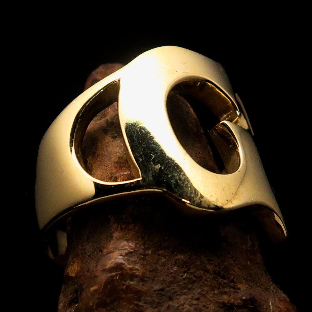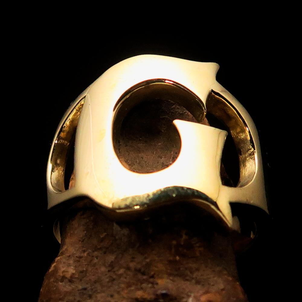 Introducing the exquisite Mirror Polished Men's Brass Initial Ring, a stunning accessory designed for the modern man who values style and individuality. This ring features a bold letter 'G', making it a perfect choice for those looking to showcase their initials or add a personal touch to their jewelry collection. Crafted from high-quality solid brass, this ring is not only durable but also boasts a sleek, mirror-polished finish that catches the light beautifully, ensuring you stand out in any crowd.