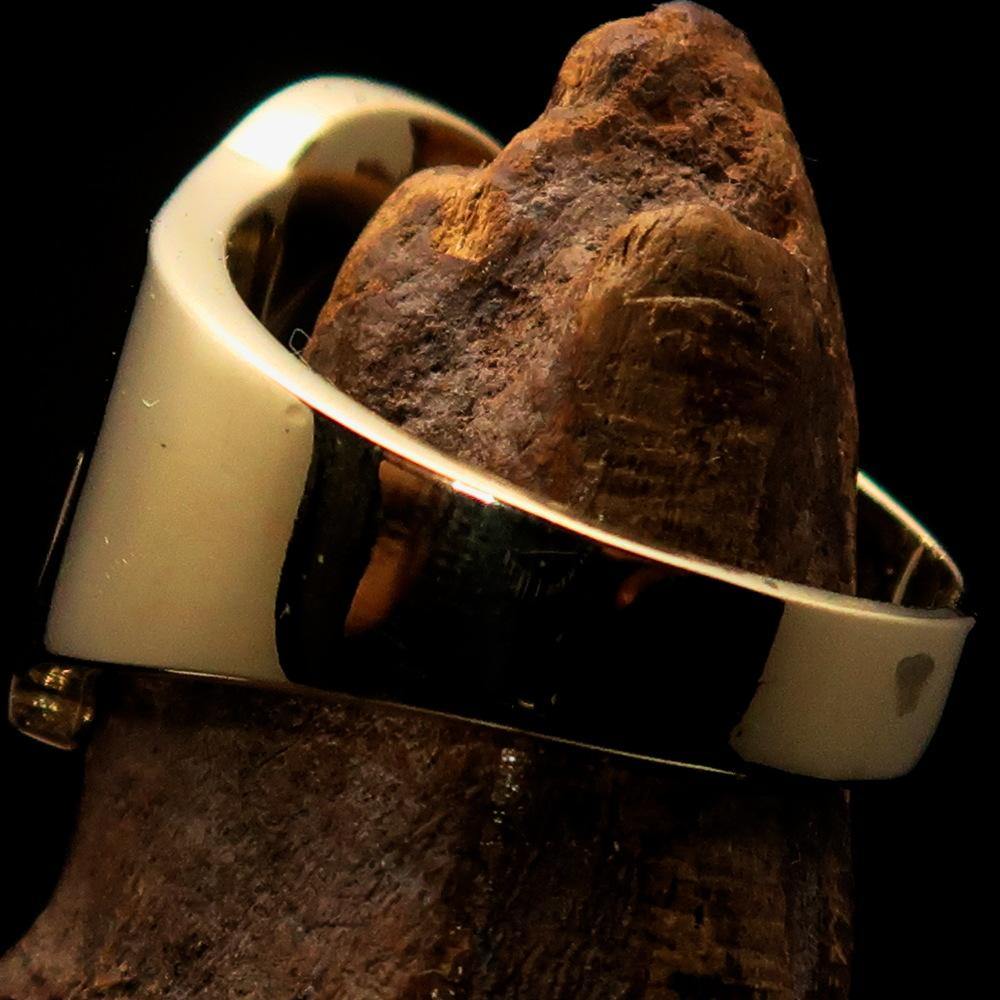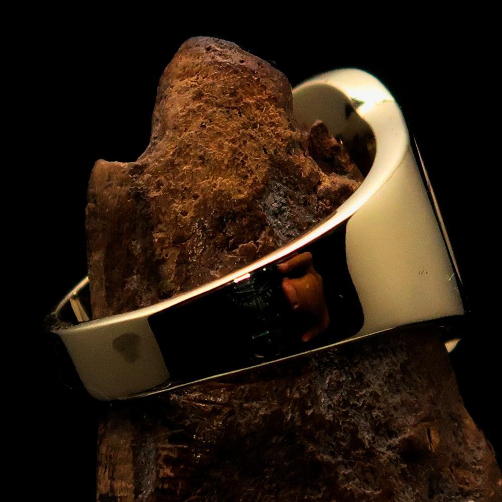 The ring measures 19 mm along the finger, ensuring a comfortable fit for most men. With a wide range of 12 sizes available, you can easily find the perfect size for yourself or as a thoughtful gift for a loved one. If you require a custom size, simply add a note during checkout, and we will gladly accommodate your request, ensuring that your ring fits perfectly.