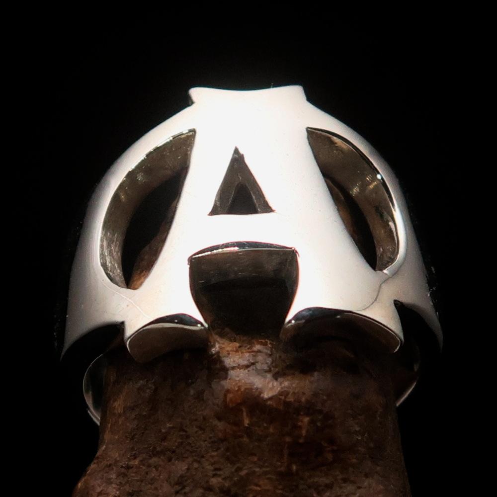 Introducing our stunning Mirror Polished Men's Sterling Silver Initial Ring, featuring a bold letter A that makes a statement. This exquisite ring is crafted from solid sterling silver, ensuring durability and a luxurious shine. The high-polish finish enhances its elegance, making it a perfect accessory for any occasion, whether casual or formal.