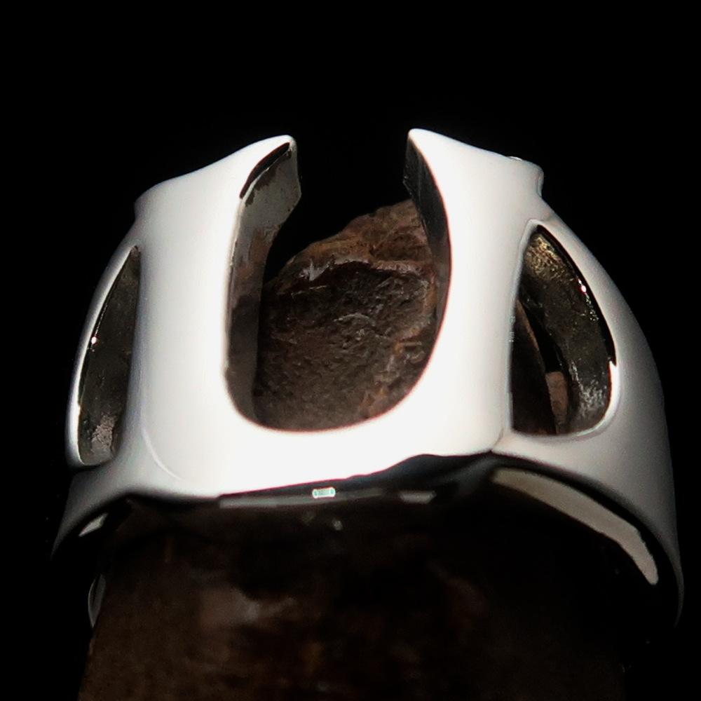 Introducing our stunning Mirror Polished Men's Sterling Silver Initial Ring, featuring a bold letter U that makes a statement. This exquisite ring is crafted from solid sterling silver, ensuring durability and a luxurious shine. The high-polish finish enhances its elegance, making it a perfect accessory for any occasion.