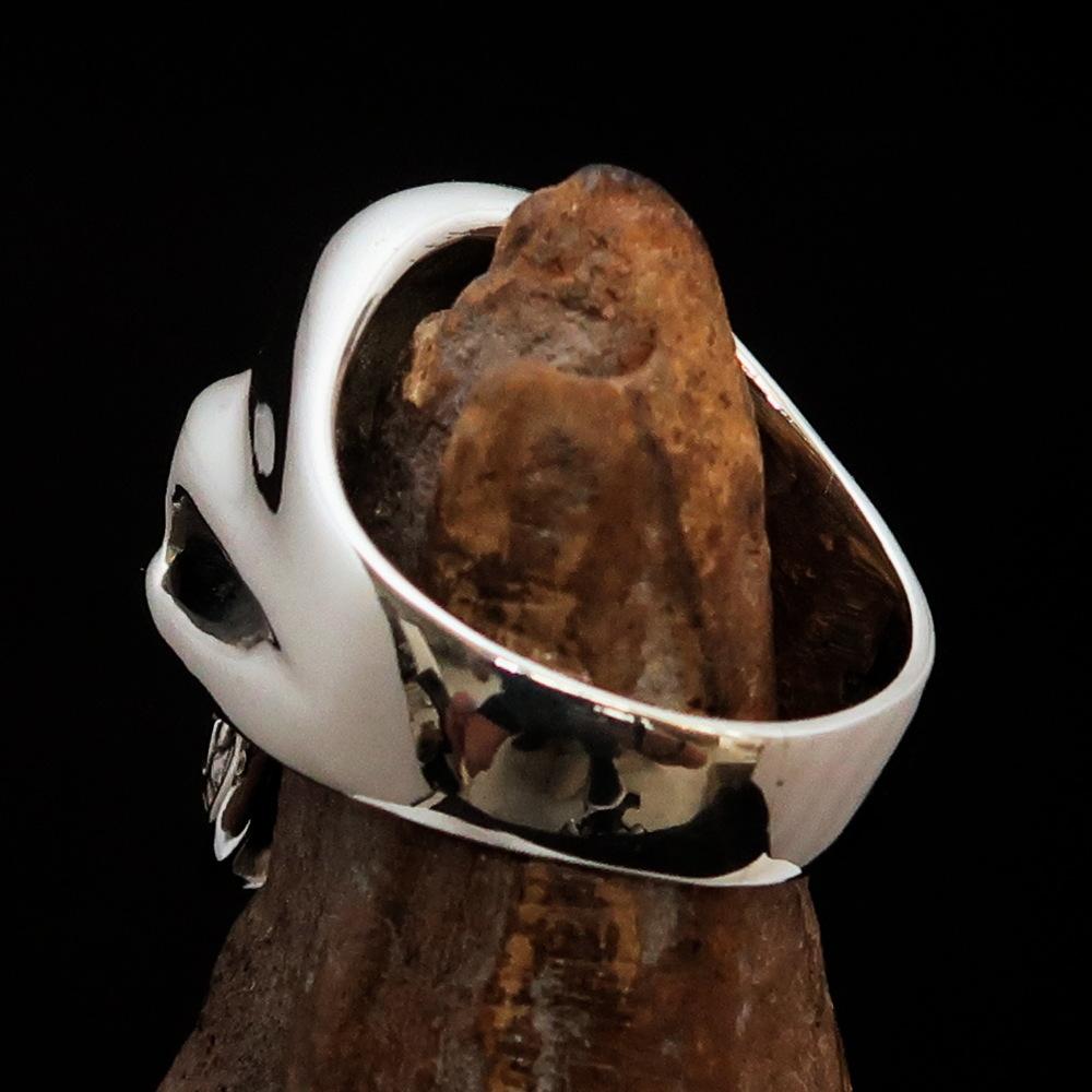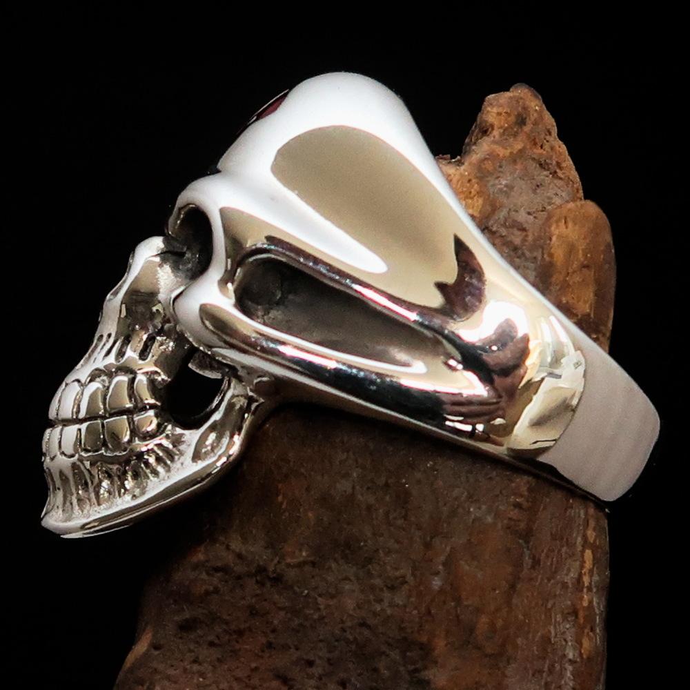 Dropship Mirror polished Men's Sterling Silver Outlaw Biker Ring 1% Skull Red