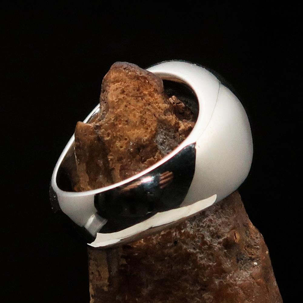 Dropship Nicely crafted domed Men's Buddhist Ring Black Aum Symbol - Sterling