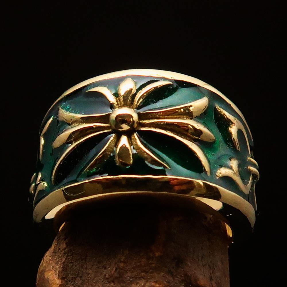This ring is more than just an accessory; it is a reflection of your personal style and taste. The combination of solid brass and green enamel creates a striking contrast that is sure to turn heads. Whether you are treating yourself or looking for a thoughtful gift for a loved one, this ring is an excellent choice. Its timeless design and quality craftsmanship make it a piece that can be cherished for years to come.