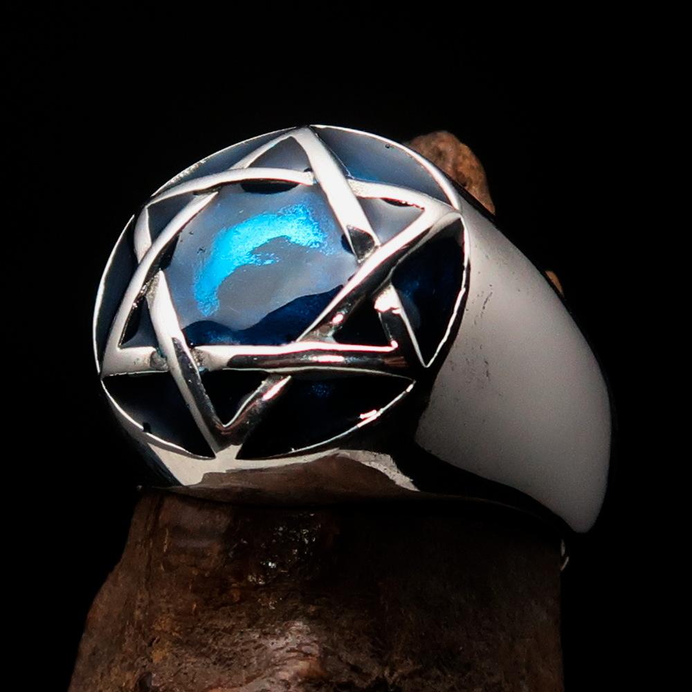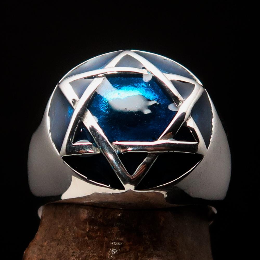 Introducing our beautifully crafted Men's Hebrew Ring, showcasing the iconic Blue Star of David, also known as the Hexagram. Made from solid sterling silver, this ring is not only a stunning piece of jewelry but also a meaningful symbol of faith and heritage. The high-polished finish combined with vibrant enamel detailing makes it a standout accessory for any occasion.