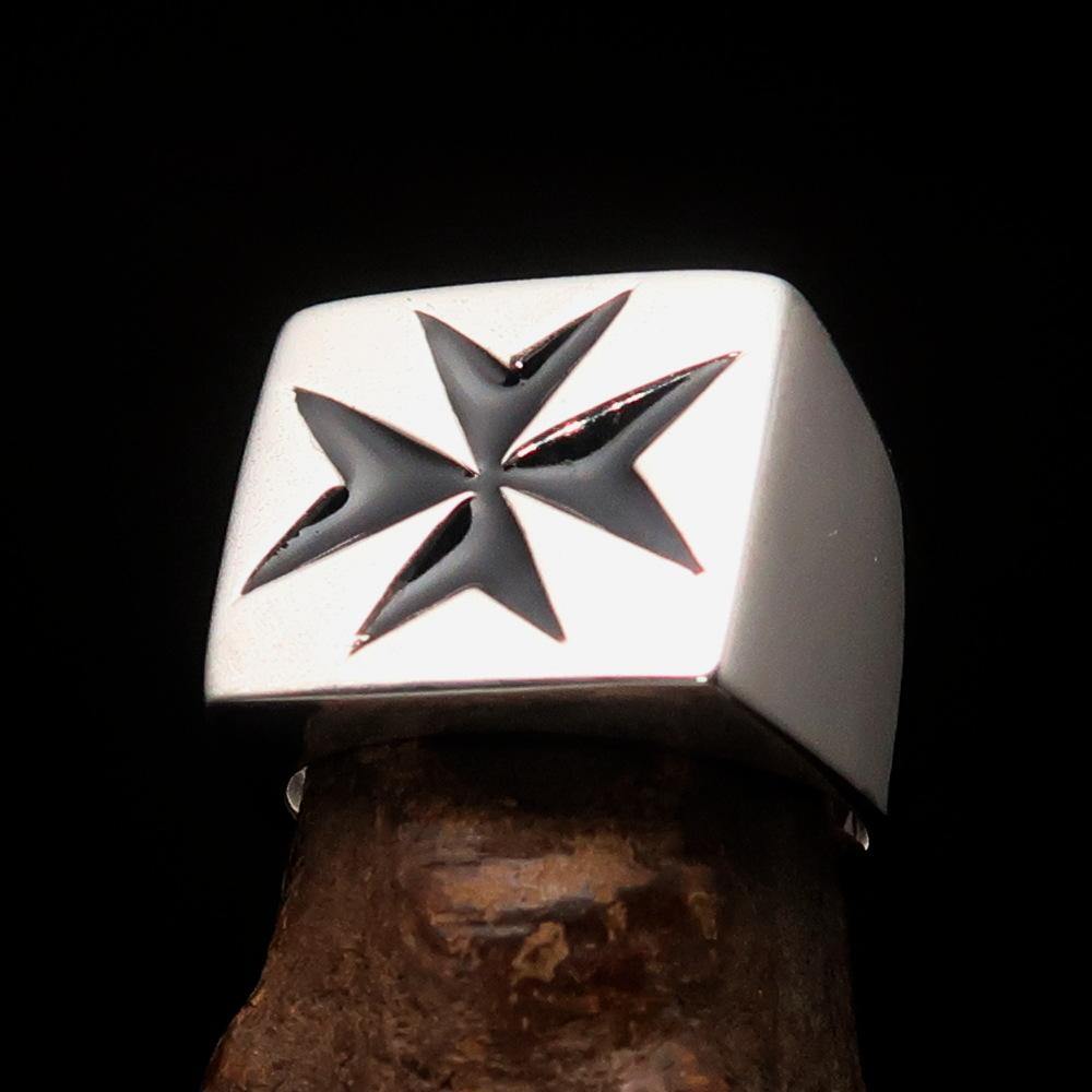 Each Men's Knight Ring is hallmarked 925, signifying its authenticity and quality. The meticulous craftsmanship ensures that every detail is perfect, from the smooth edges to the polished surface. The black enamel inlay of the Maltese Cross adds a unique touch, making this ring not just a piece of jewelry, but a statement of style and individuality.