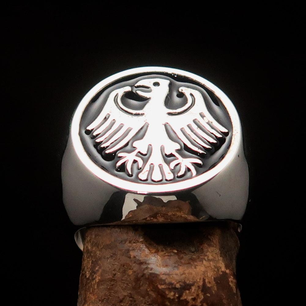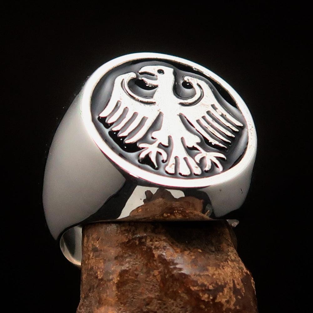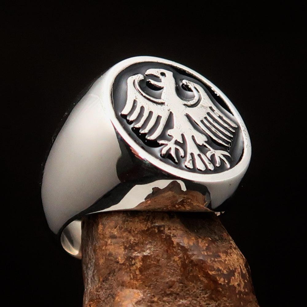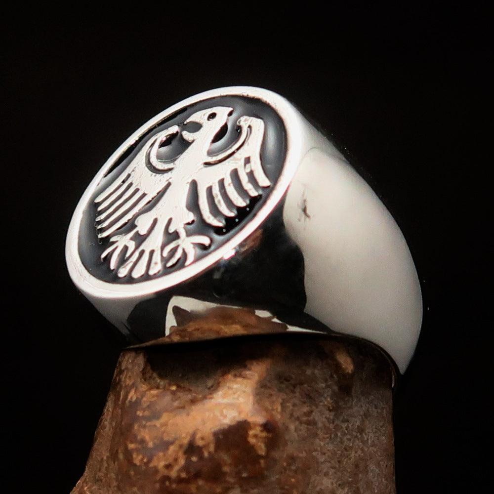 Men's Seal Ring featuring the German Eagle Coat of Arms in black enamel on sterling silver, showcasing a bold and elegant design.