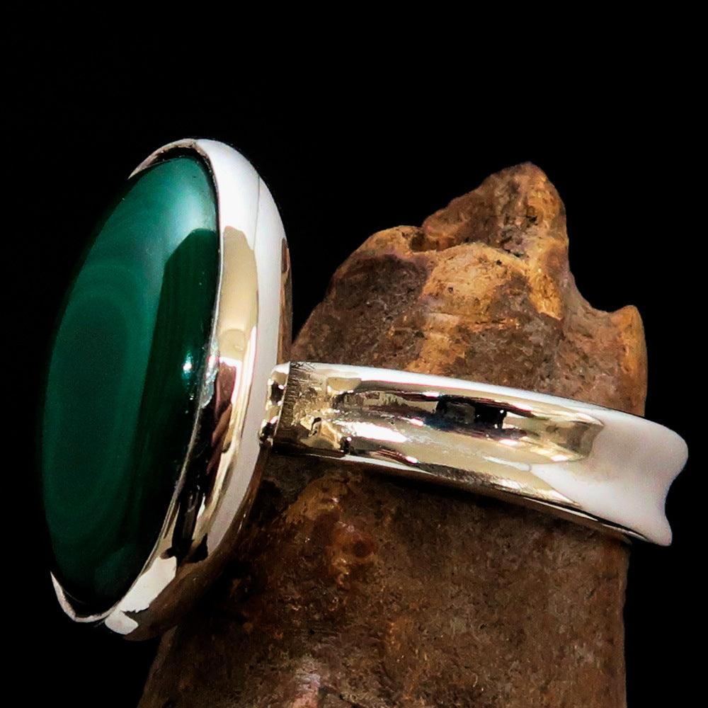 Invest in a piece that reflects your unique style and personality. The combination of sterling silver and green Malachite creates a stunning contrast that is sure to catch the eye. Don't miss out on the opportunity to own this beautiful ring that embodies both beauty and meaning.