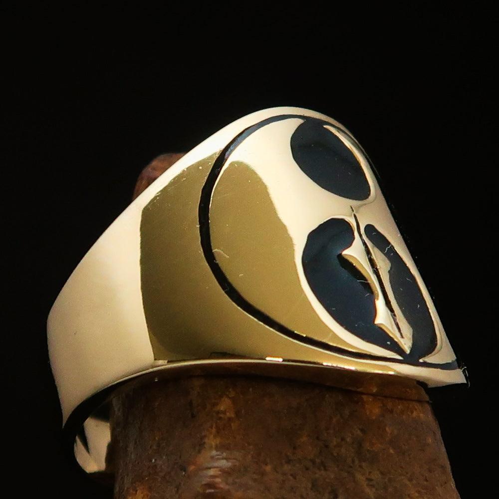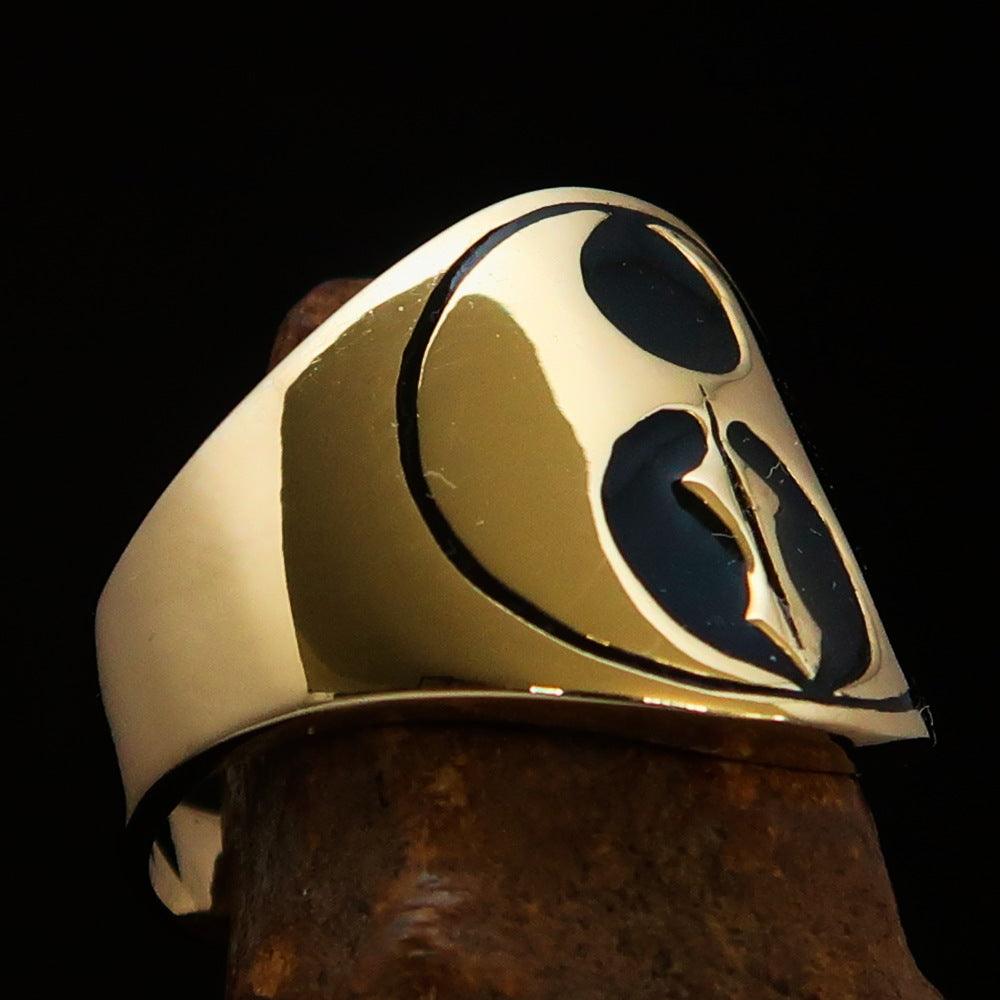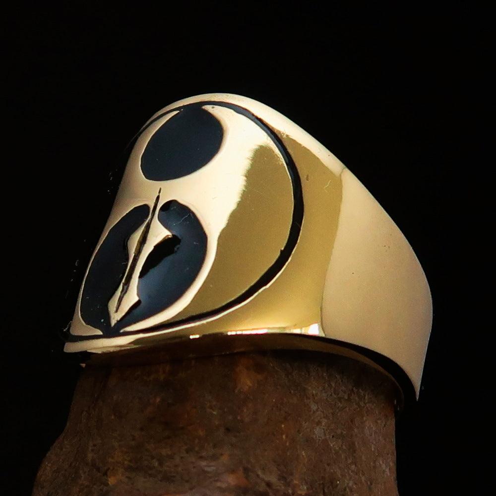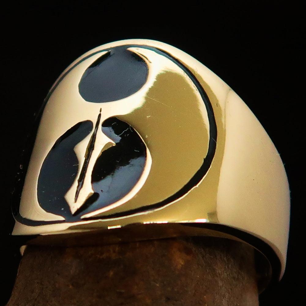 Introducing the Perfectly Crafted Ancient Men's Black Labrys Double Axe Pinky Ring, a stunning piece of jewelry that combines historical significance with modern craftsmanship. This ring is made from solid brass and features a high-polished finish adorned with black enamel, making it a striking accessory for any occasion.