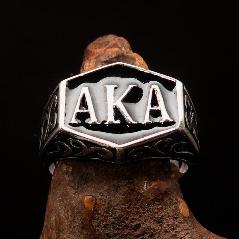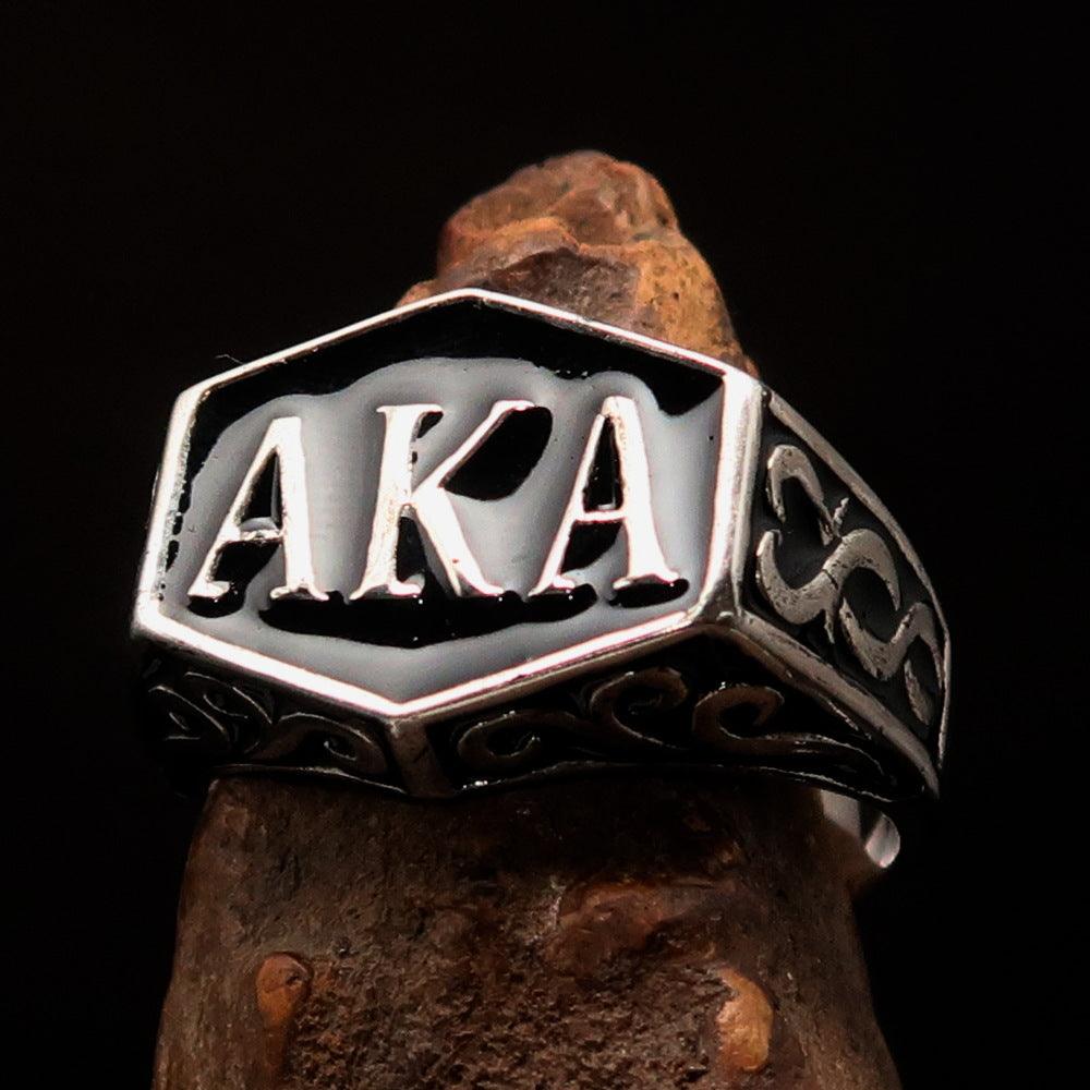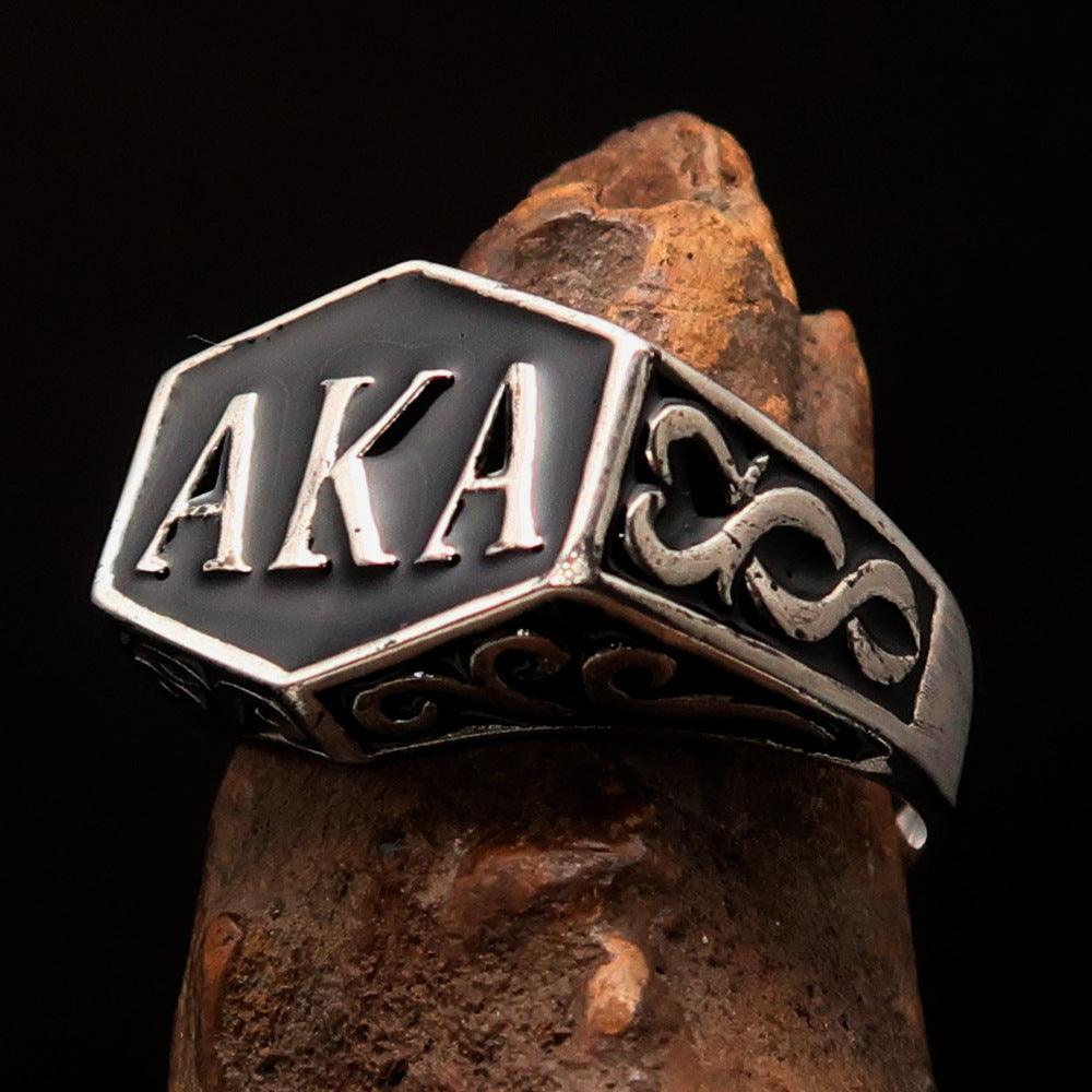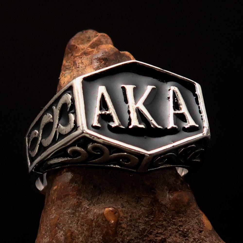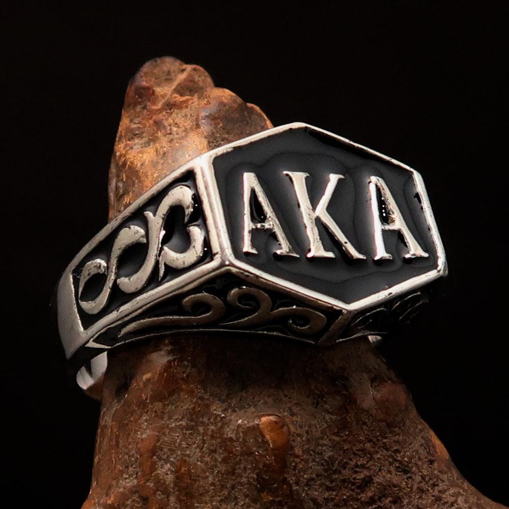 This ring is not just a piece of jewelry; it is a statement of style and individuality. Whether you are looking for a gift for a loved one or a treat for yourself, the Perfectly Crafted 'as known as' Synonym Men's Ring in black is an excellent choice. Its timeless design and quality craftsmanship make it a must-have accessory for any man's jewelry collection.