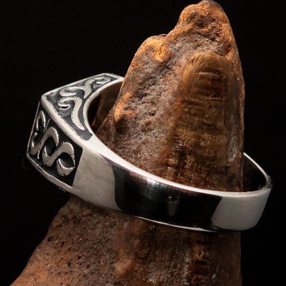 Introducing the Perfectly Crafted 'as known as' Synonym Men's Ring in black, a stunning piece of jewelry designed for the modern man. Made from solid sterling silver, this ring features a high-polished finish complemented by a sleek enamel coating. The elegant design makes it a versatile accessory suitable for both casual and formal occasions.