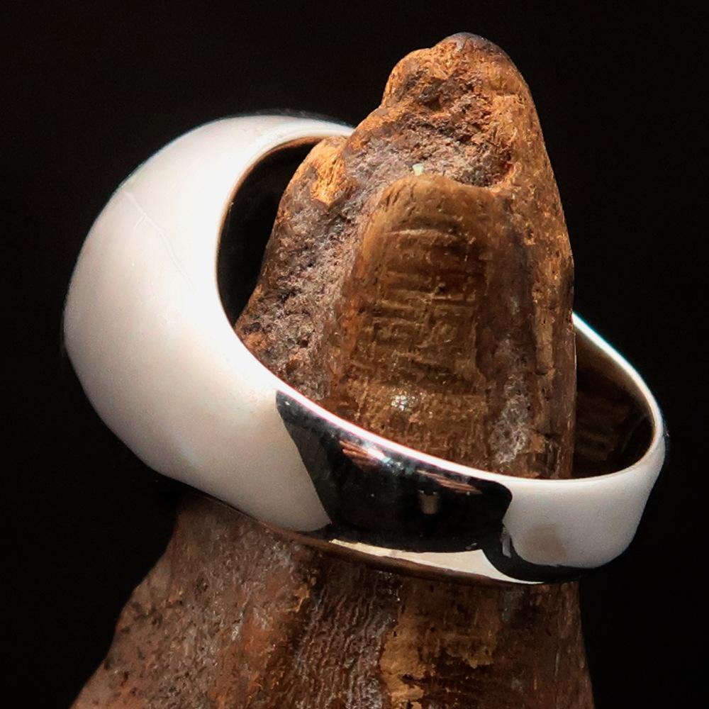 To maintain the beauty of your Men's Biker Ring, it is recommended to clean it regularly with a soft cloth. Avoid exposing the ring to harsh chemicals or abrasive materials that could damage the enamel or tarnish the silver. With proper care, this ring will remain a cherished piece in your jewelry collection for years to come.