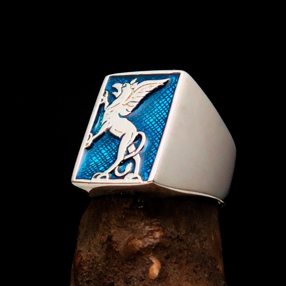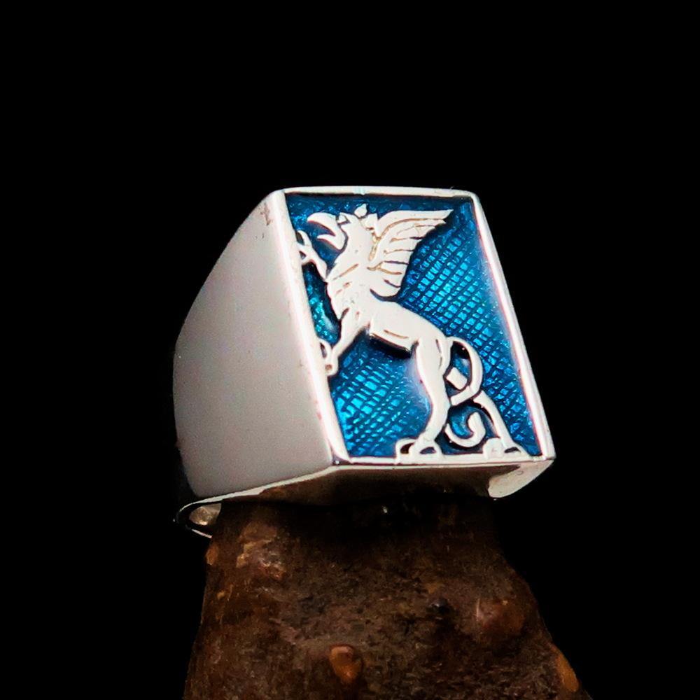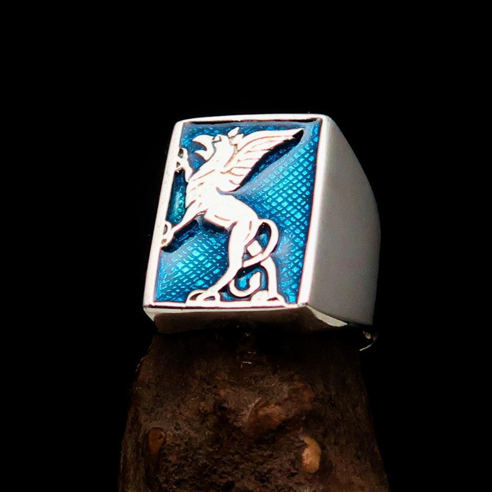 Don't miss out on owning this one-of-a-kind ring. Order yours today and elevate your jewelry collection with the Perfectly Crafted Men's Blue Griffin Ring Griffon - Sterling Silver!