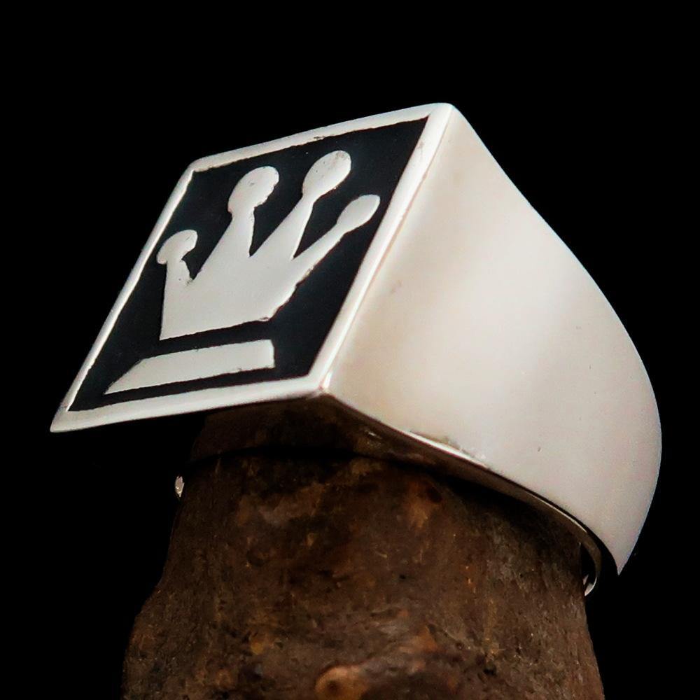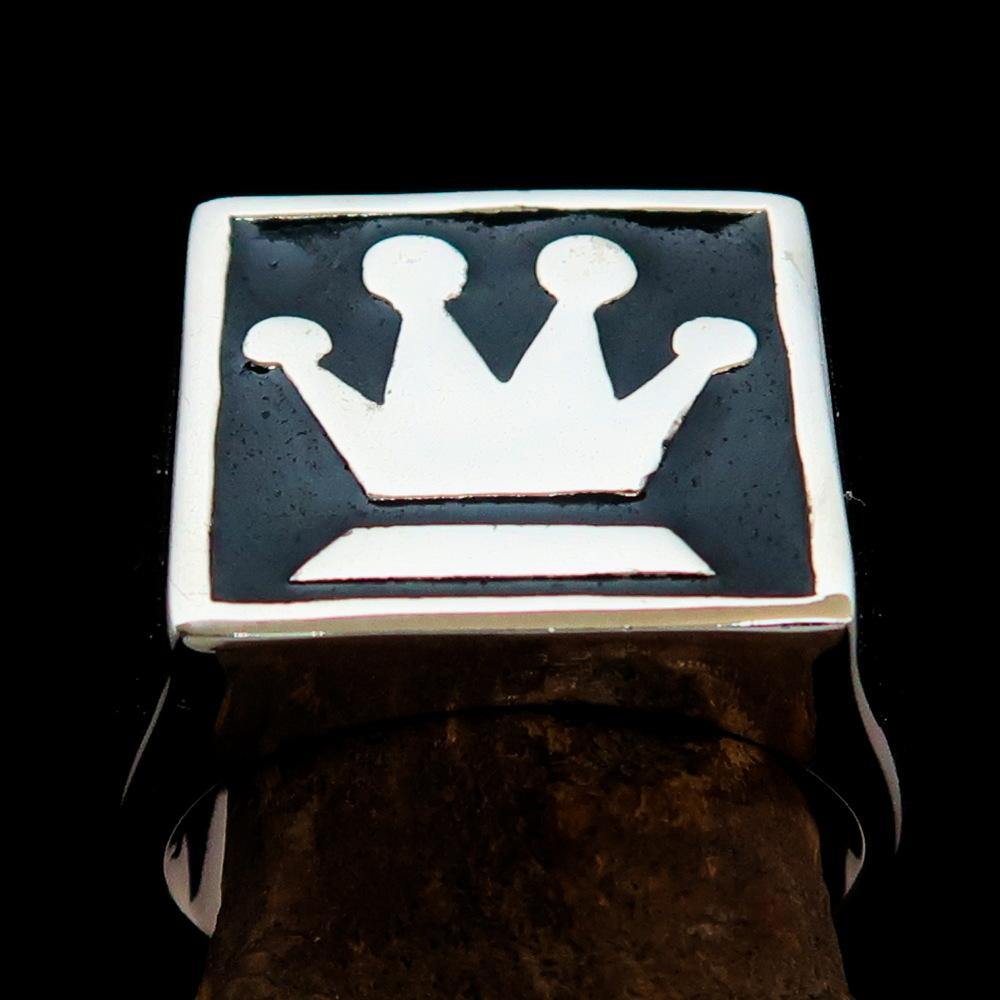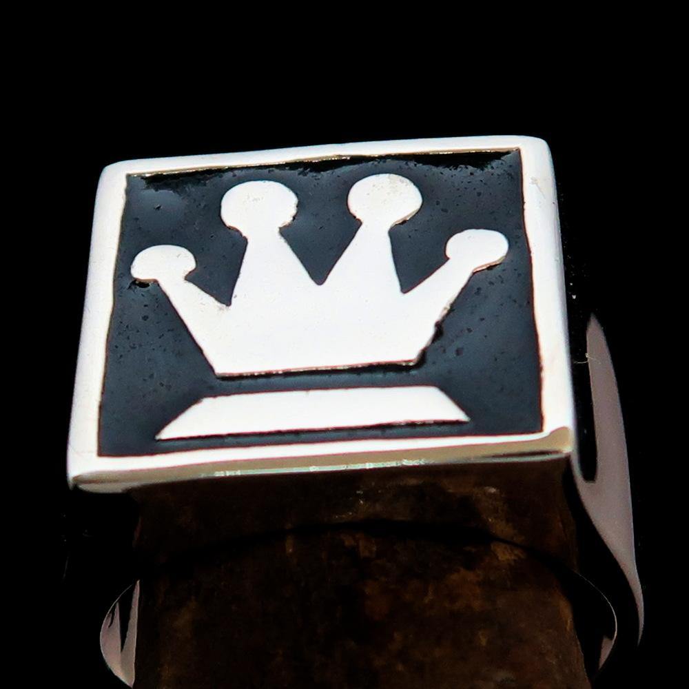 Introducing the exquisite Men's Chess Player Ring, a stunning piece that combines elegance and passion for chess. Crafted from solid sterling silver, this ring features a beautifully designed Queen's Crown, symbolizing power and strategy in the game of chess. The high-polished finish, complemented by striking black enamel, makes this ring a standout accessory for any chess enthusiast.