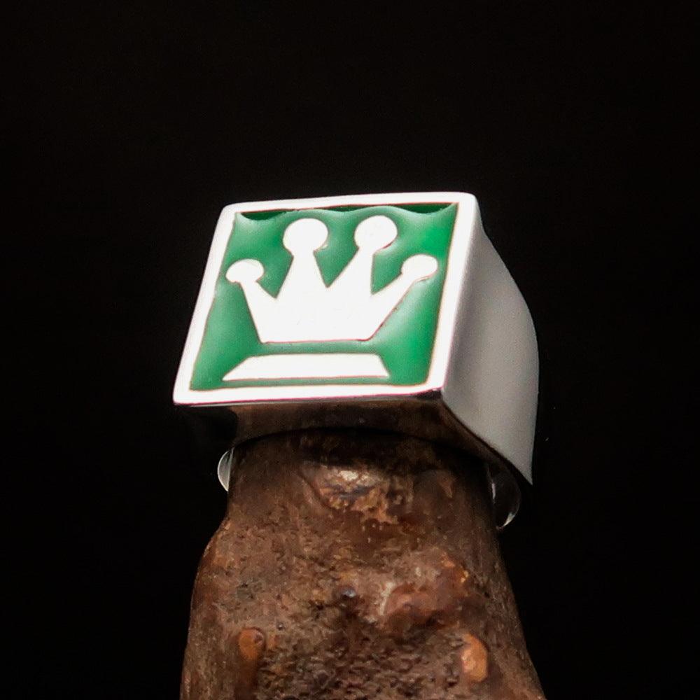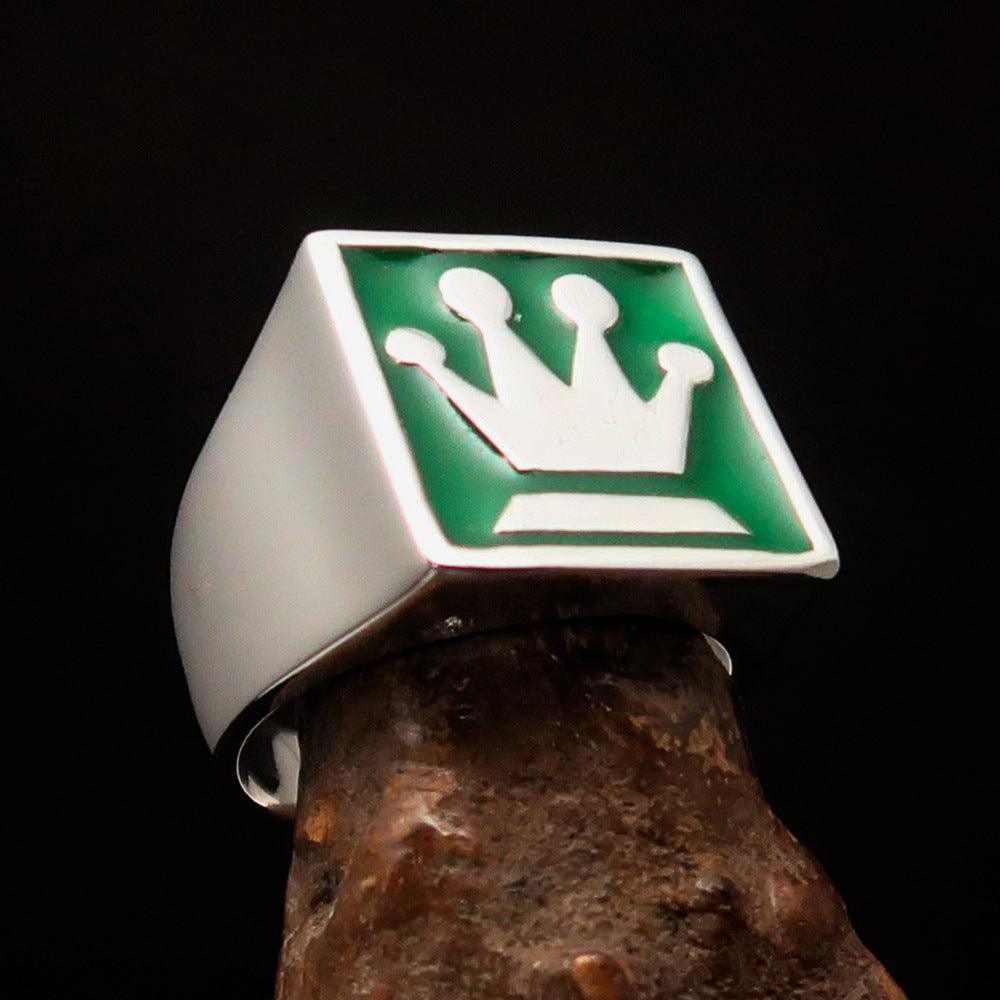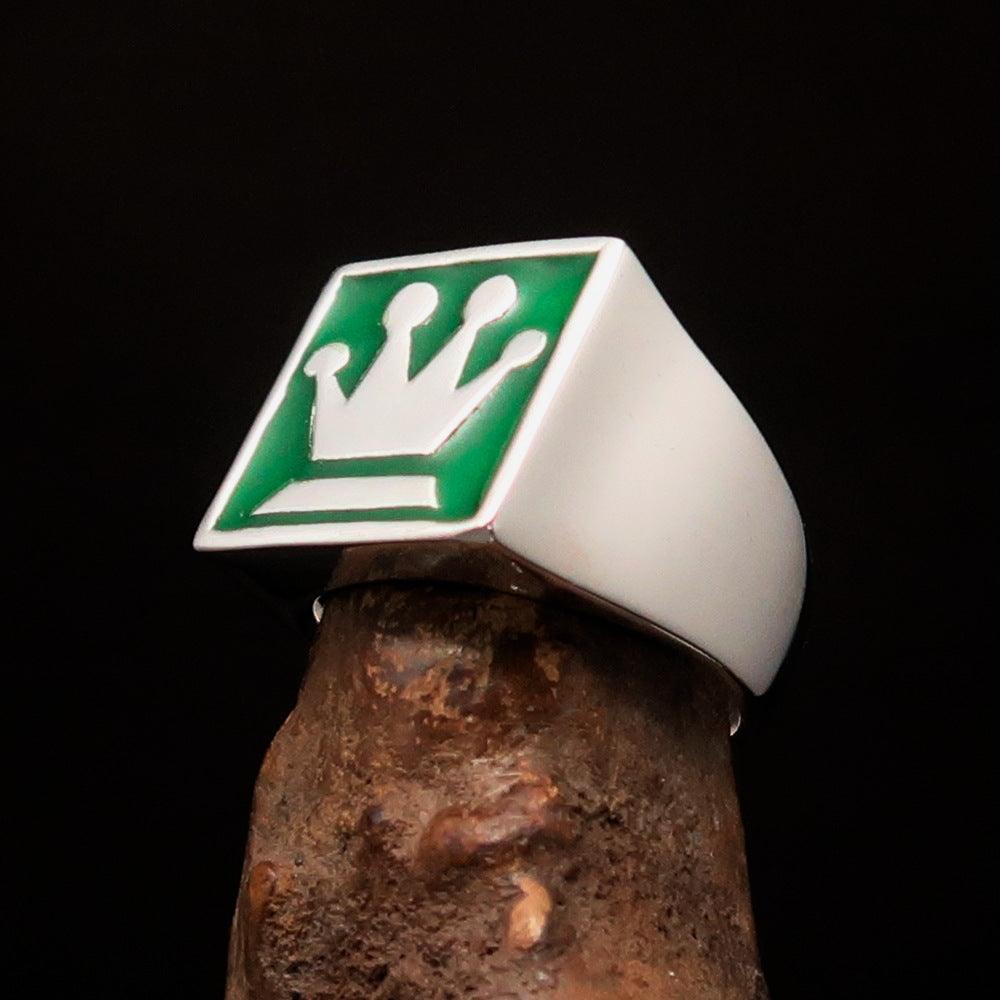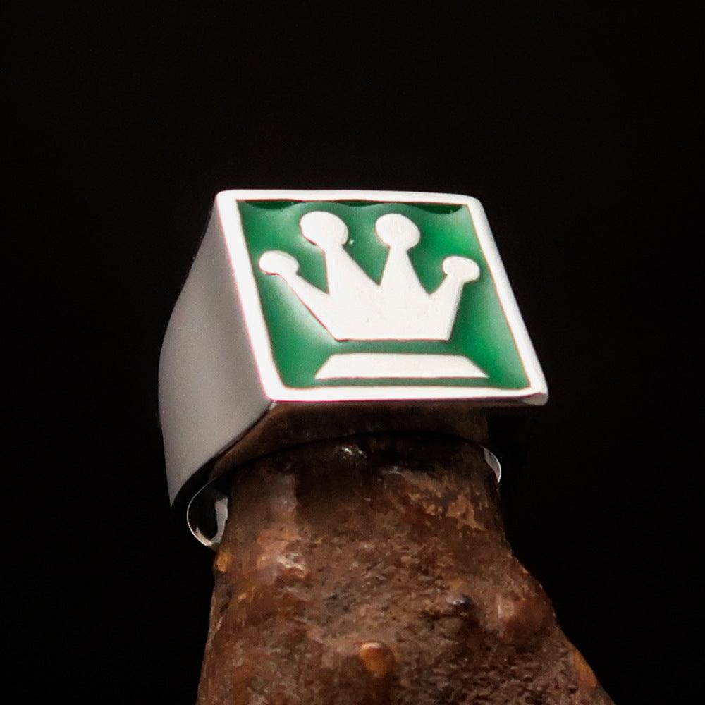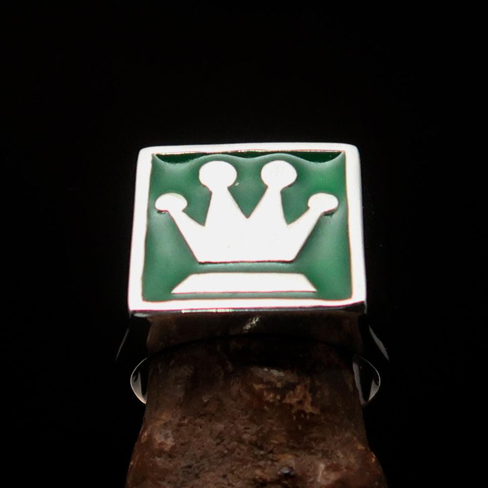 One of the most striking features of this ring is its vibrant green enamel. The enamel adds a pop of color that enhances the overall design, making it perfect for those who want to express their love for chess in a stylish way. The combination of silver and green creates a visually appealing contrast that is sure to catch the eye.
