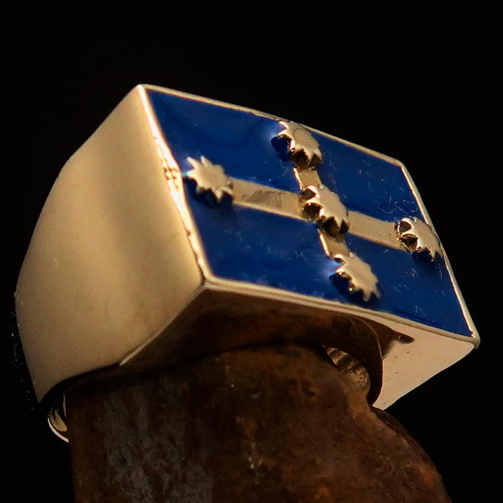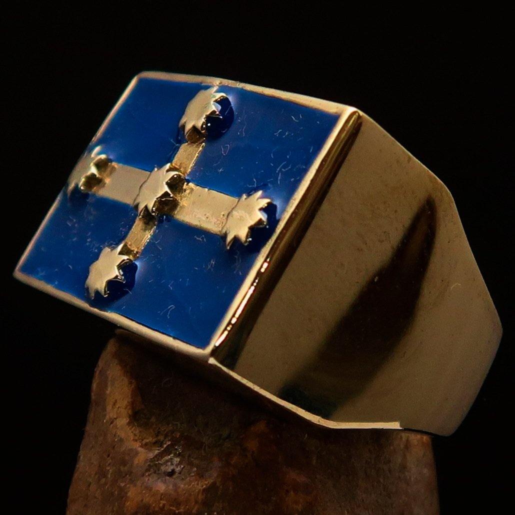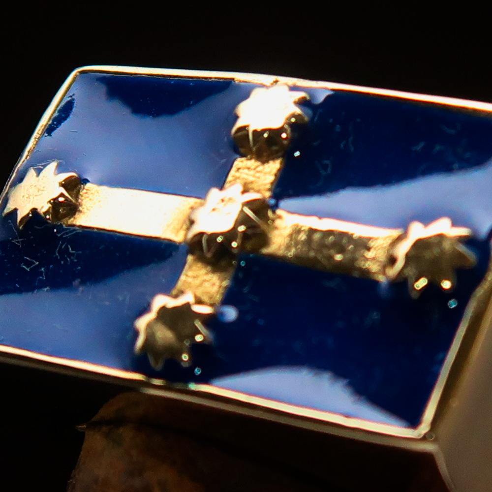 Choosing the Men's Eureka Flag Ring means investing in a piece that is not only stylish but also rich in meaning. The solid brass construction ensures longevity, while the high polished finish and blue enamel provide a striking appearance. With multiple size options and the ability to customize, you can be confident that this ring will fit perfectly and suit your personal style.