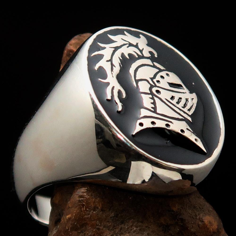 Choosing the Perfectly Crafted Men's Medieval Ring Brave Knight Black - Sterling means investing in a piece that is not only stylish but also durable. The combination of sterling silver and black enamel ensures that this ring will withstand the test of time while maintaining its stunning appearance. Whether you wear it daily or on special occasions, it is sure to draw attention and compliments.