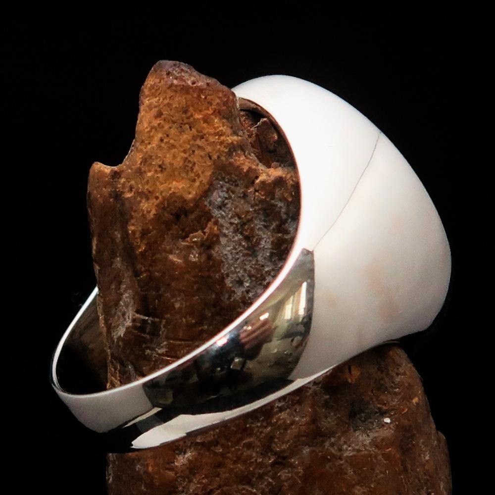 This ring is not just a piece of jewelry; it is a statement of style and individuality. The high-polished sterling silver reflects light beautifully, while the black enamel adds a touch of sophistication and mystery. Whether you are a biker, a medieval enthusiast, or simply someone who appreciates fine jewelry, this ring is designed to impress.