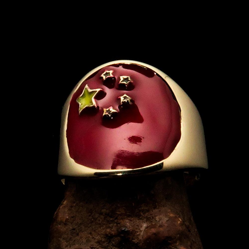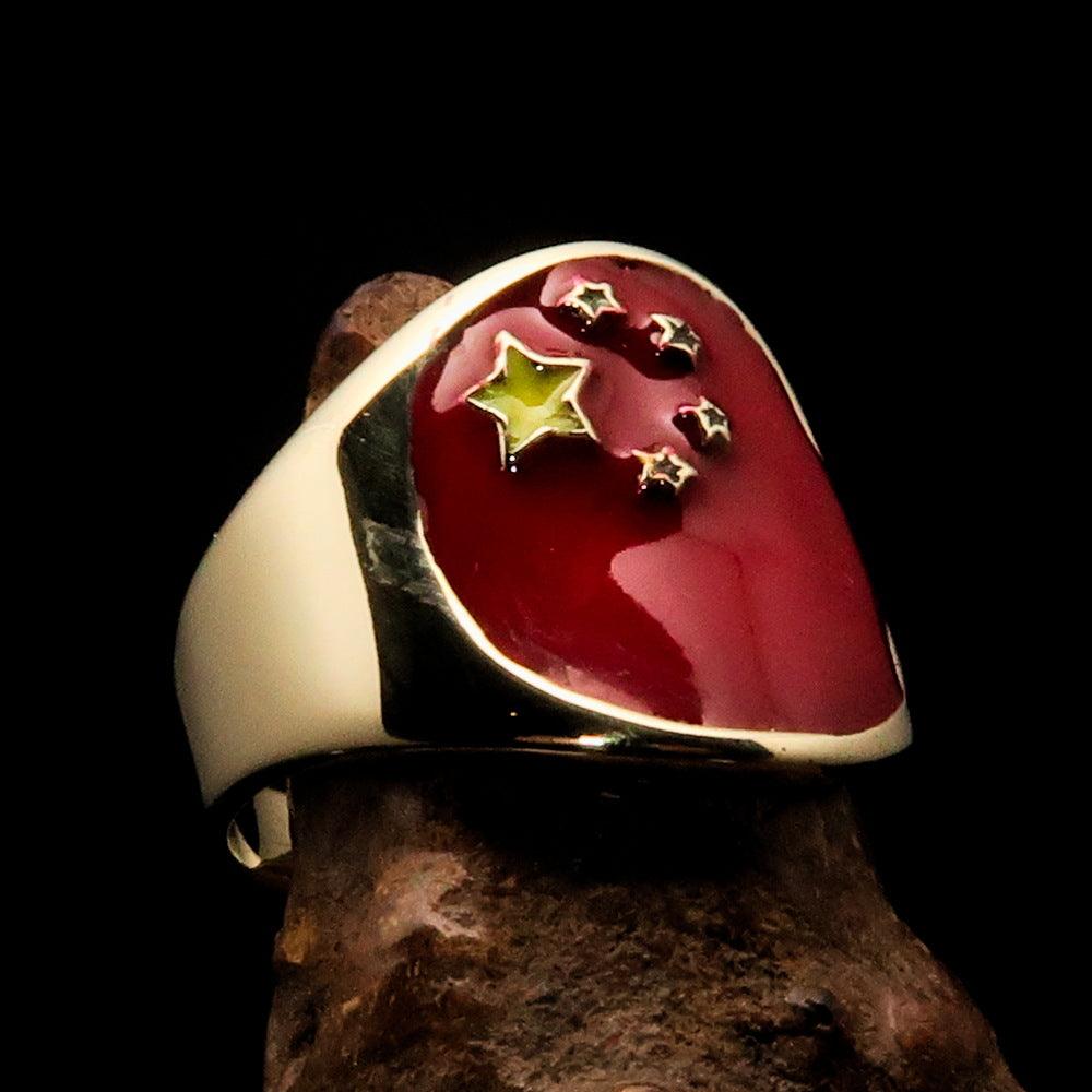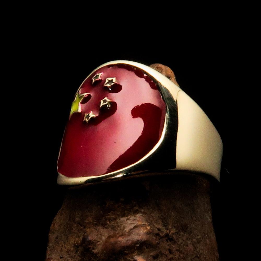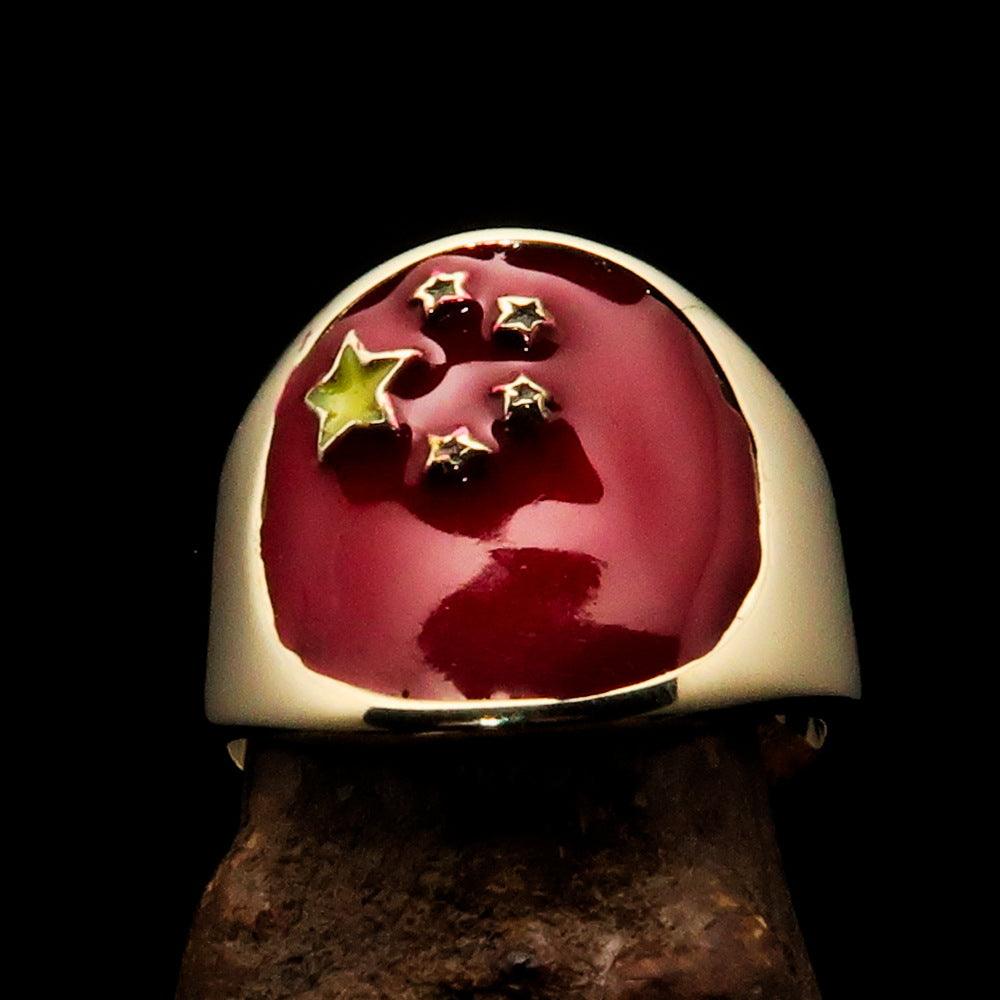 Introducing the Perfectly Crafted Men's National Flag Ring China, a stunning piece of jewelry that combines style and patriotism. Made from solid brass, this ring features a high polished finish that enhances its beauty and durability. The vibrant enamel detailing showcases the national flag, making it a perfect accessory for any proud citizen.