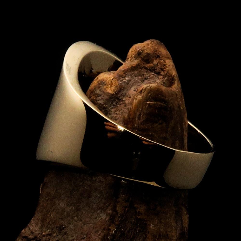The ring has a dimension of 19 mm along the finger, ensuring a comfortable fit for most wearers. We understand that finding the perfect size can be challenging, which is why we offer 12 different sizes to choose from. Additionally, we provide a custom size option, allowing you to order half or even quarter sizes. Simply add a note during checkout to specify your desired size.