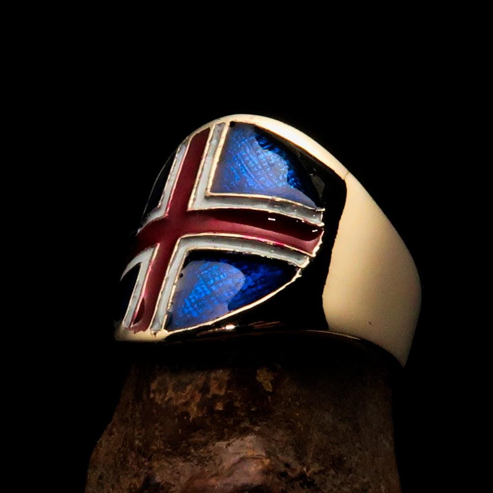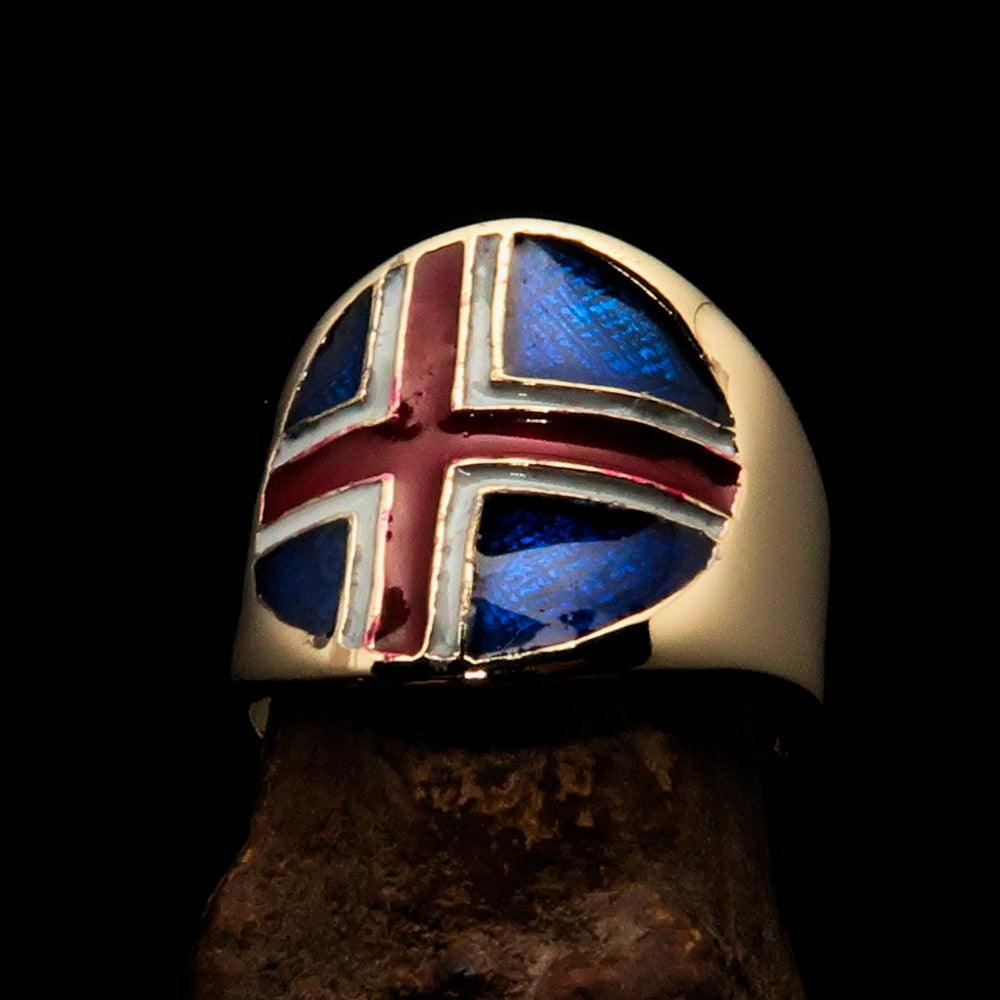 Our Men's National Flag Ring Iceland is crafted with attention to detail, ensuring that each piece meets high standards of quality. The solid brass material not only provides a sturdy and long-lasting ring but also gives it a classic look that never goes out of style. The high polish finish reflects light beautifully, making this ring a standout accessory.