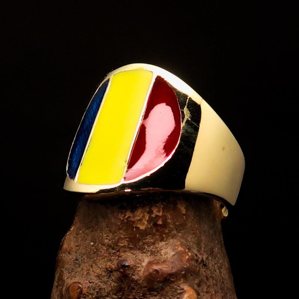 Introducing the Perfectly Crafted Men's National Flag Ring Romania, a stunning piece of jewelry that showcases your pride in Romania. Made from solid brass, this ring is designed to last while providing a high-polished finish that catches the eye. The vibrant enamel detailing adds a touch of color and elegance, making it a perfect accessory for any occasion.