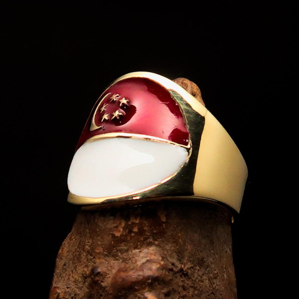 Introducing the Perfectly Crafted Men's National Flag Ring Singapore, a stunning piece of jewelry that showcases your pride and style. Made from solid brass, this ring features a high polished finish that enhances its aesthetic appeal. The vibrant enamel detailing brings the national flag to life, making it a perfect accessory for any occasion.
