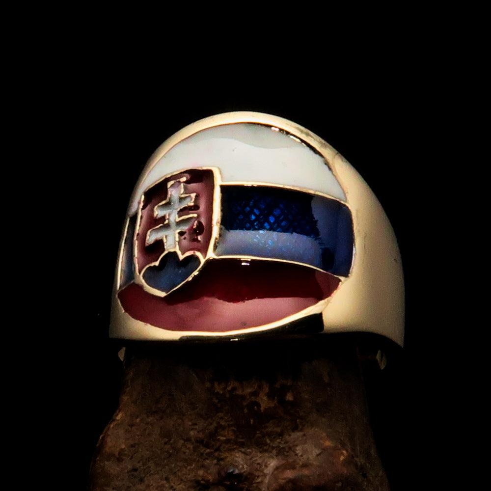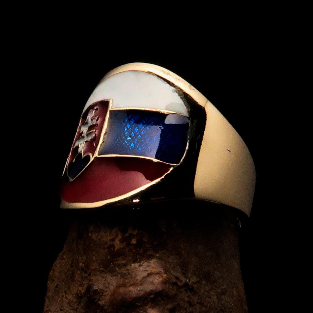 Men's National Flag Ring Slovakia made of solid brass with high polish finish and enamel detailing, showcasing the Slovakian flag colors.